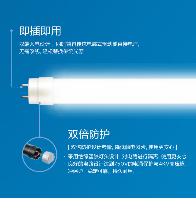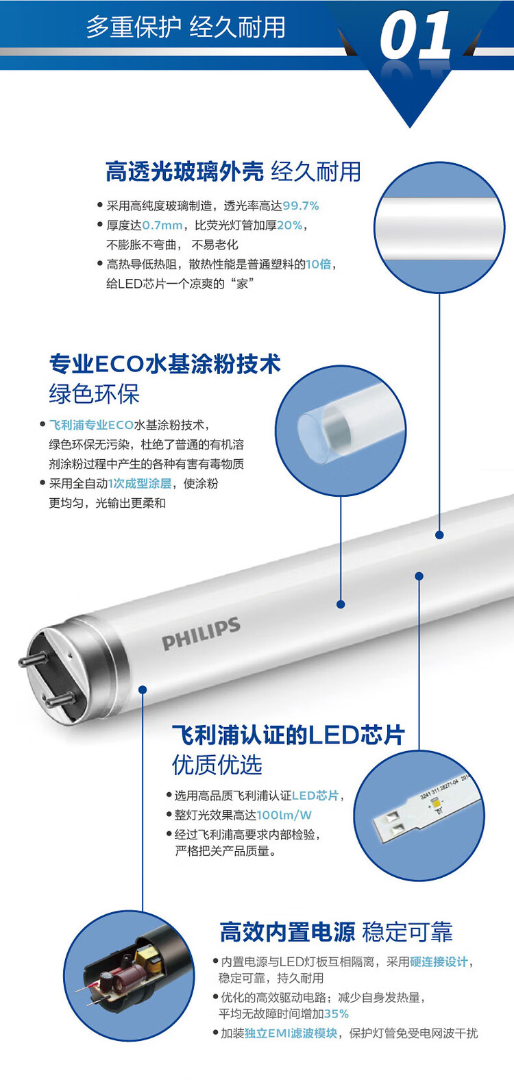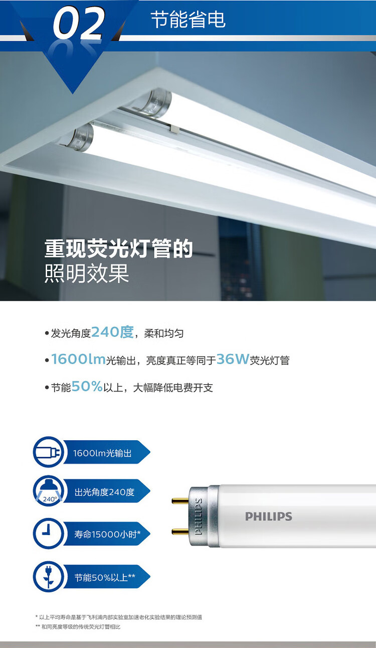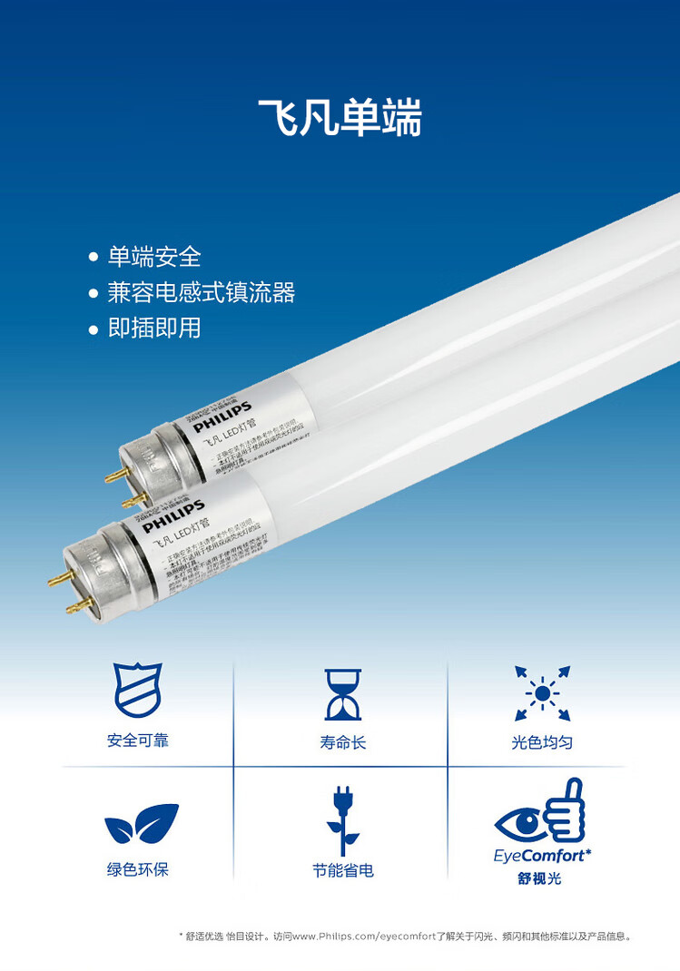 飞利浦 飞凡系列LED-T8灯管 18W 单端 1.2米 1支