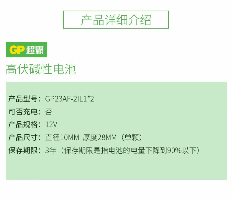 超霸 高伏碱性电池 12V/27A 1节