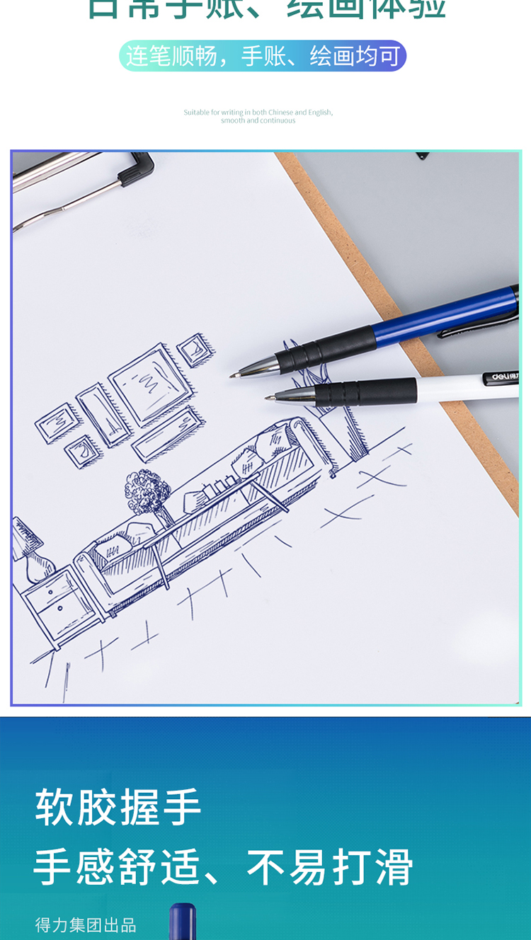 得力 子弹头圆珠笔 6505 蓝色 0.7mm 1支