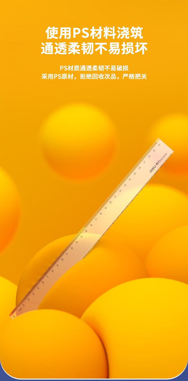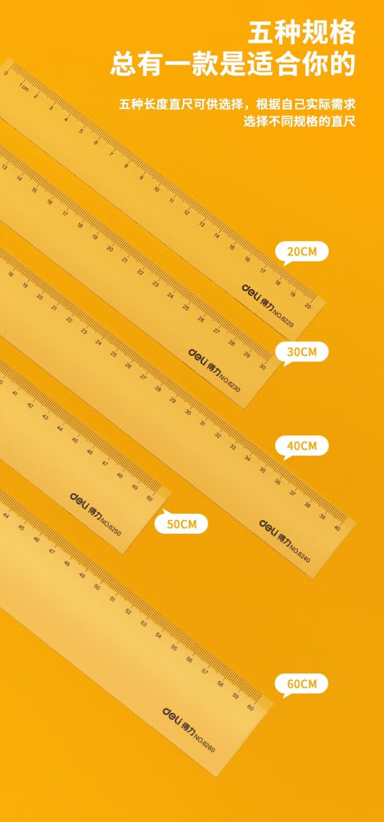 得力 PS塑料直尺 6240 透明 40cm 1把