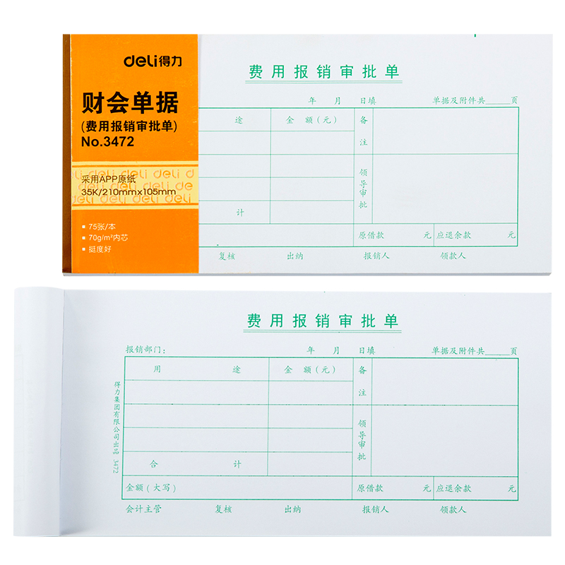 得力 财会专用单据 3472 费用报销审批单 210×105mm 1本