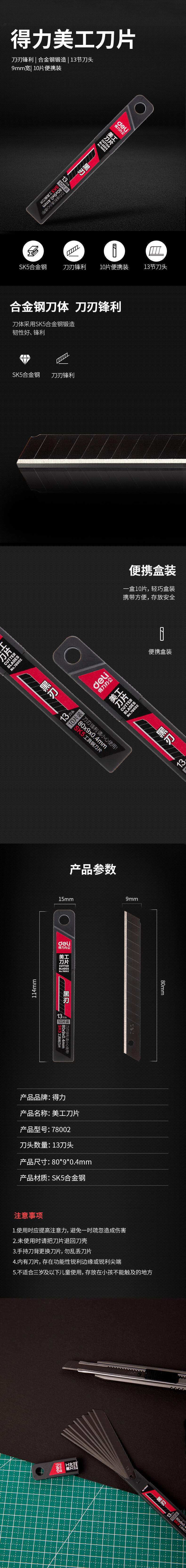 得力 高碳钢美工刀片 78002 SK5 9mm宽 60°角 50片 1件