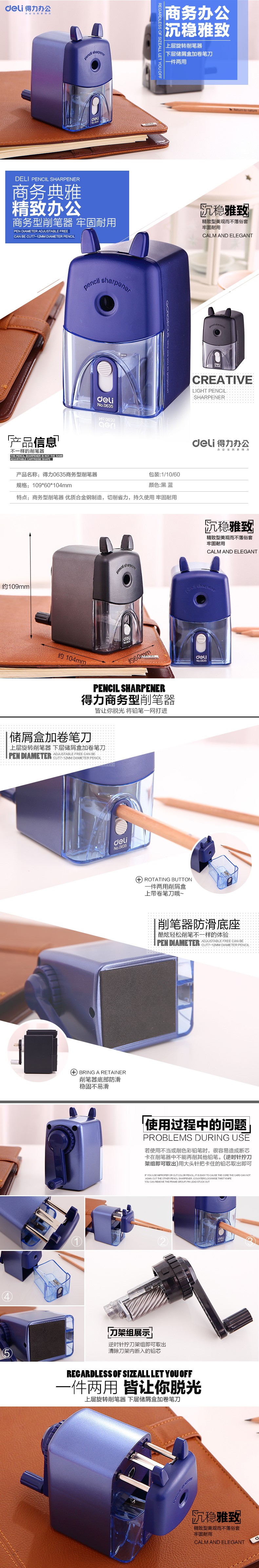 得力 削笔机 0635 黑色 手摇款 109*60**104mm 1只