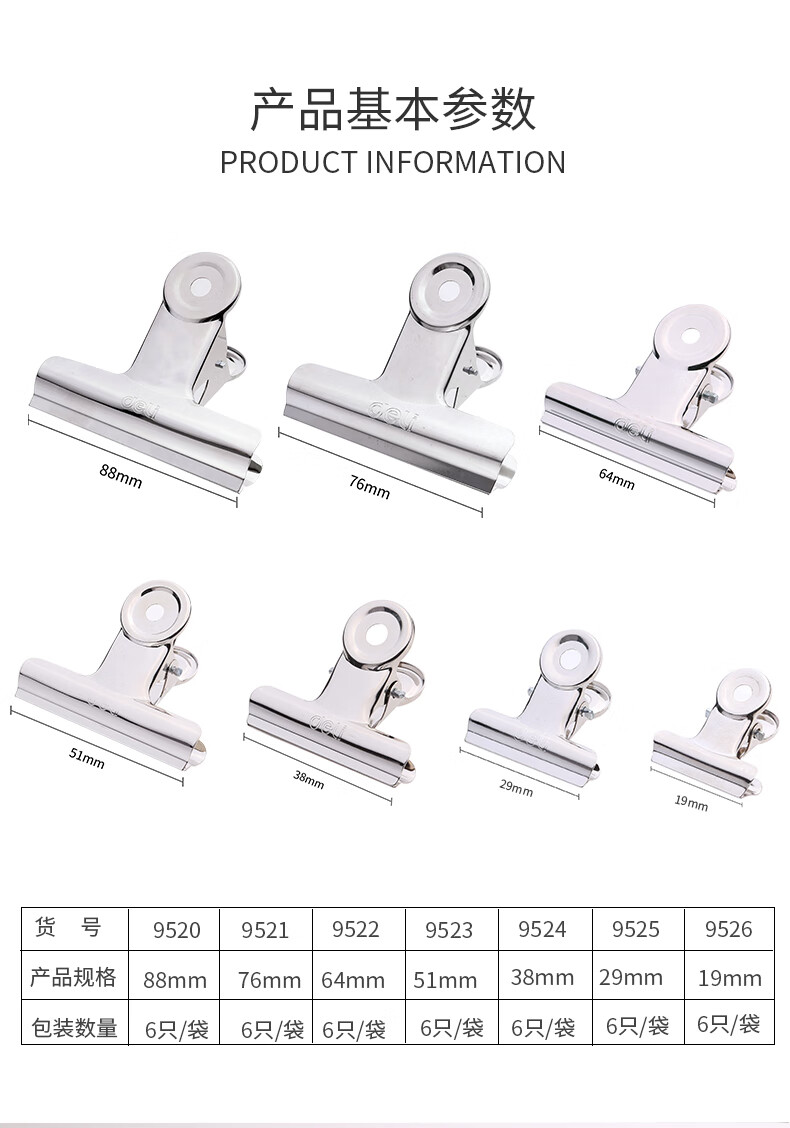 得力 圆形铁票夹 9525-5# 29mm 6只 1包