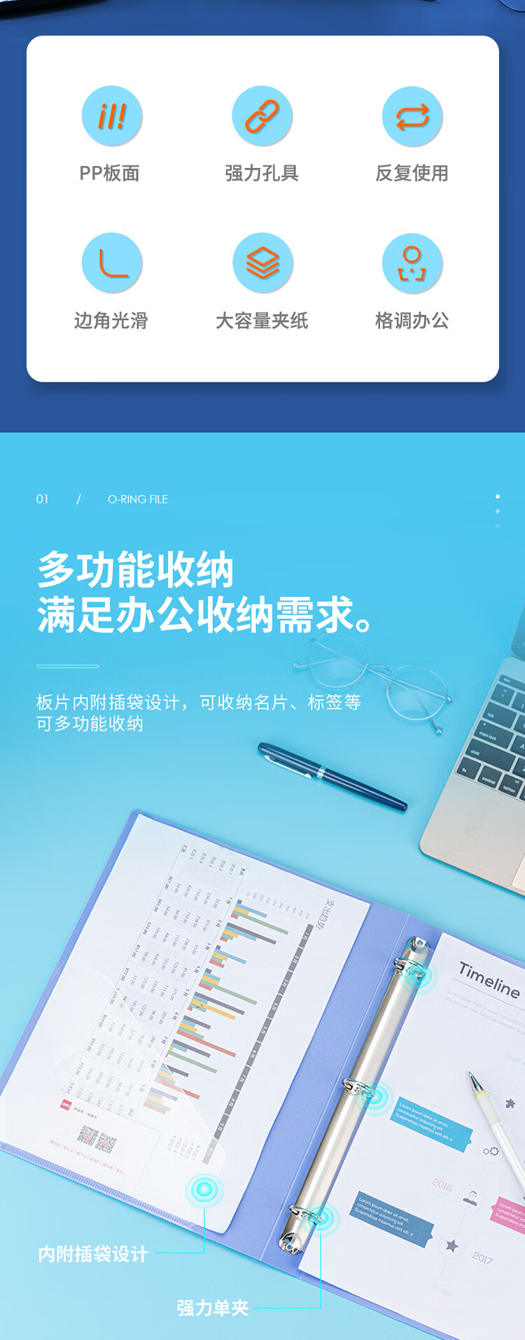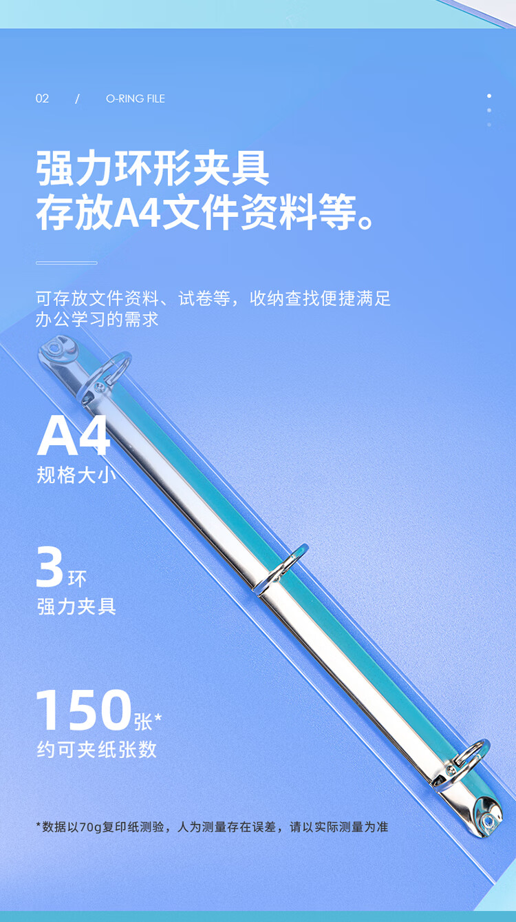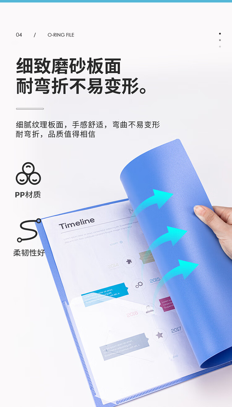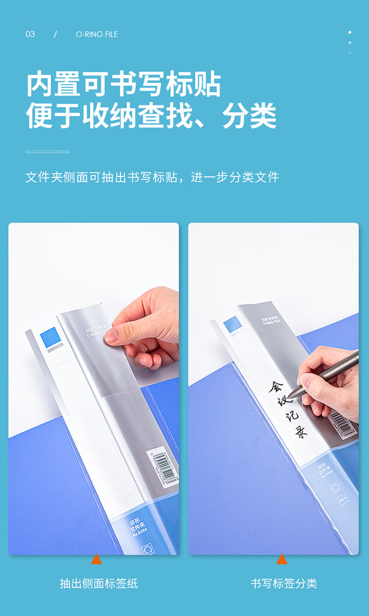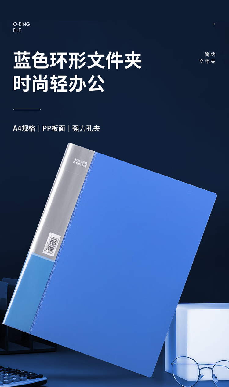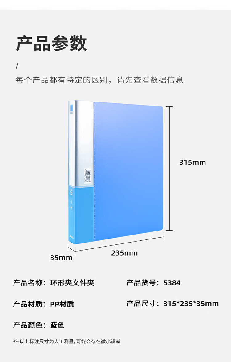 得力 文件夹 5384 蓝色 235*315*30mm 三孔环形夹+插袋 1个