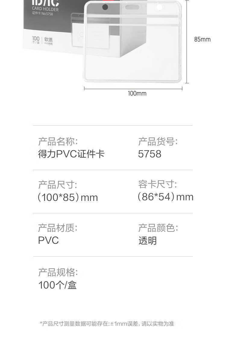 得力 证件卡 5758 透明 100×85mm 10个 1包