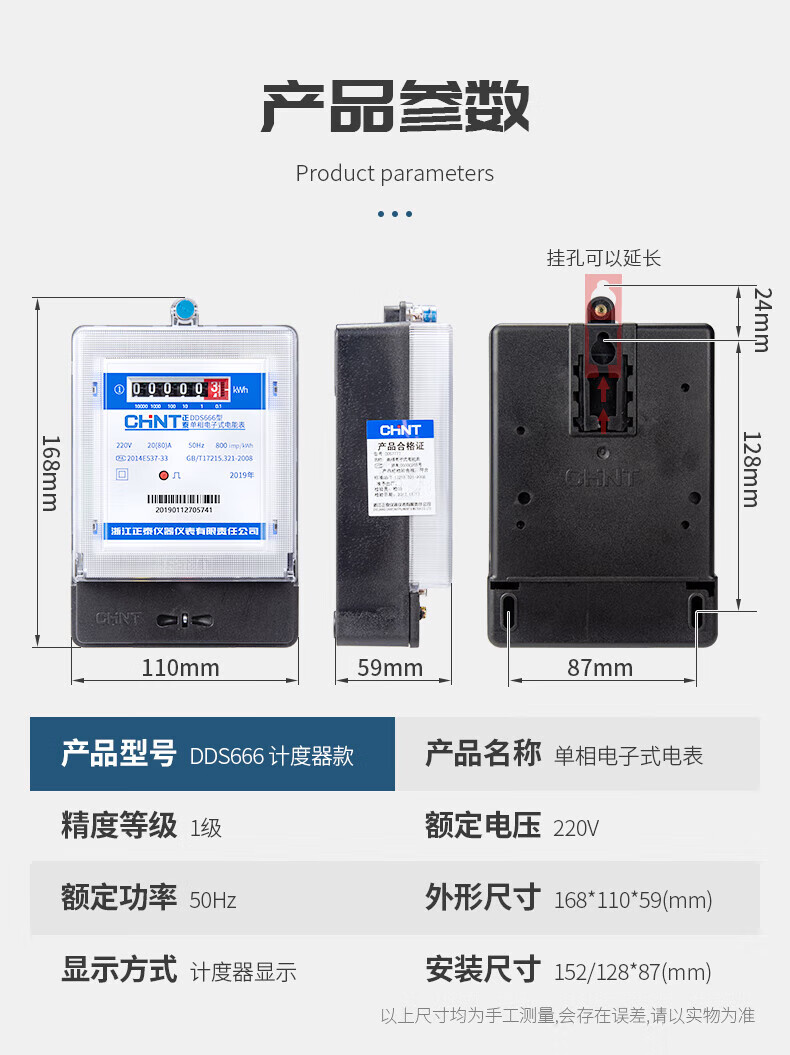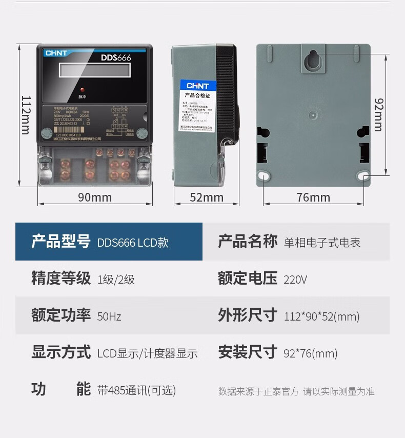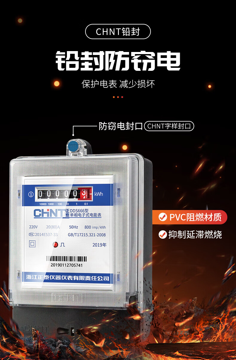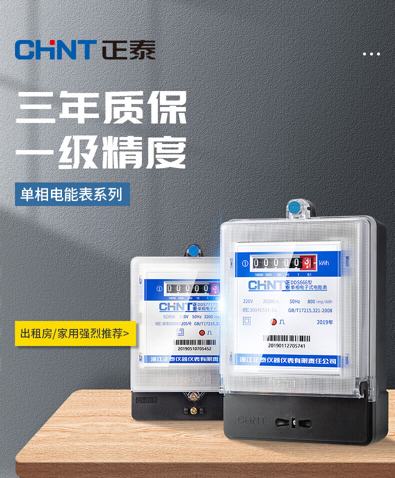 正泰 单相电子式电能表 DDS7777 220V 0.2-0.5(40)A B级 计度器 1只