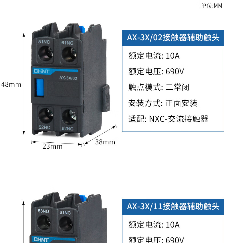 正泰 交流接触器辅助触头 AX-3X/11 1NO+1NC 10A 690V 1只