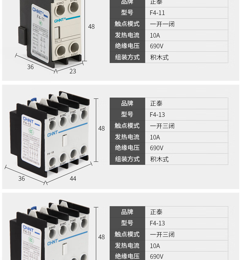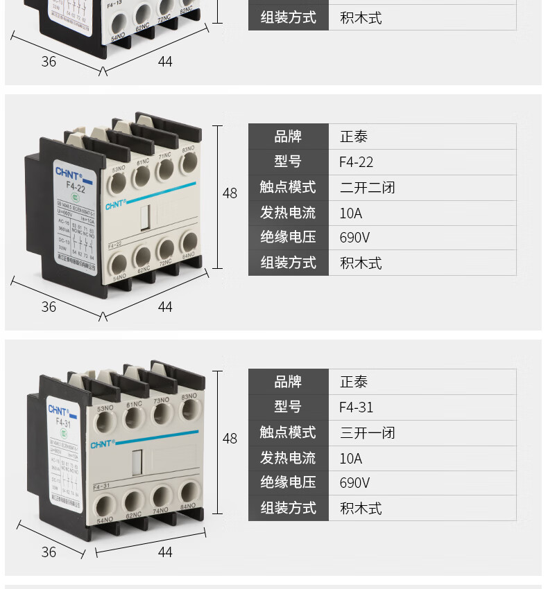 正泰 交流接触器辅助触头 F4-20 2NO 10A 690V 1只