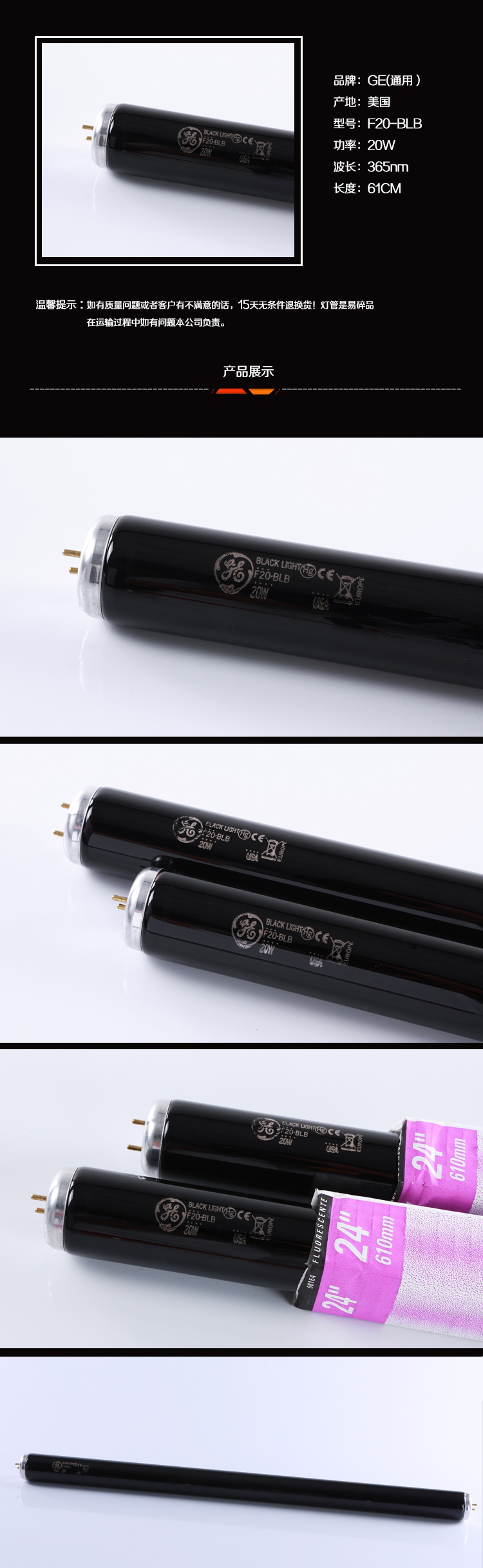 艾比德 对色灯箱UV灯管 F20 BLB 20W 60cm 1支