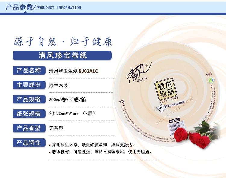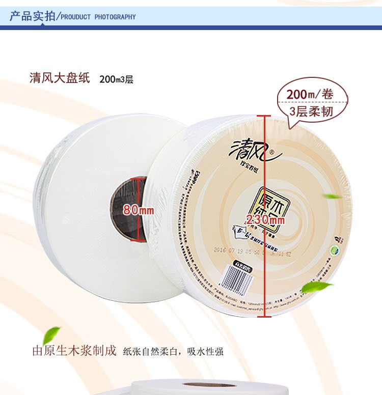 清风 无香型大卷纸 BJ02A1C 3层 200m 1卷