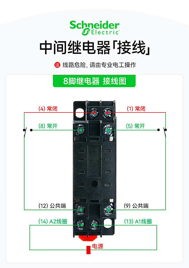施耐德电气 中间继电器底座 RXZE1M4C 经济型 二开二闭8孔插座 1个