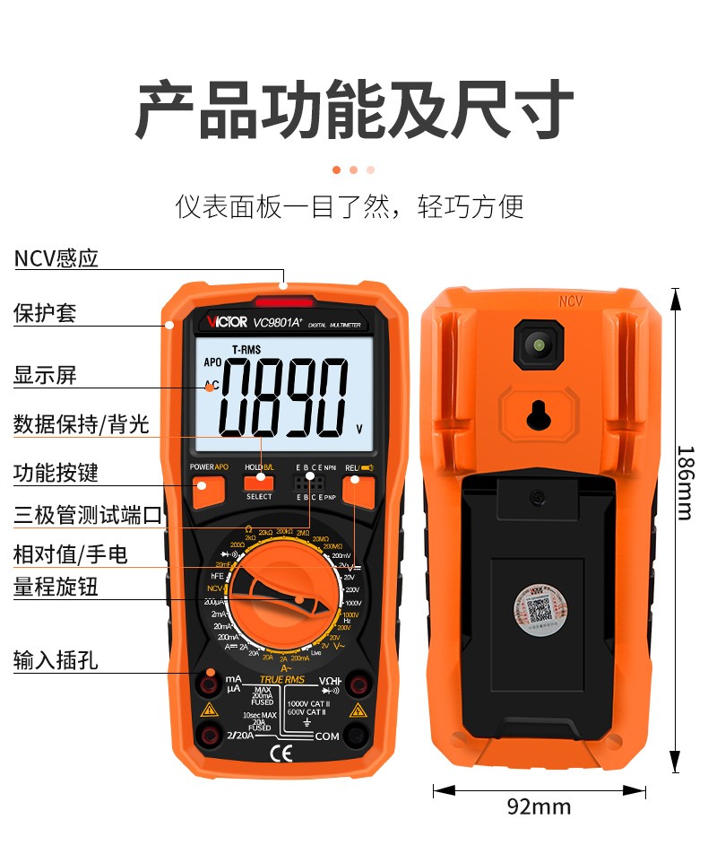 胜利仪器 高精度数显万能表 VC890D 1个