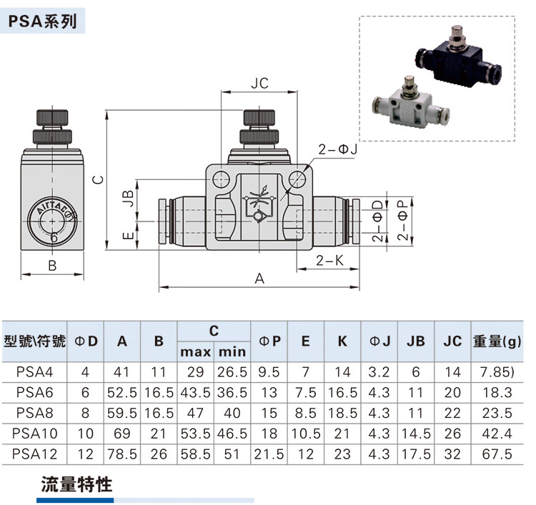 亚德客 PSA-直通型调速阀 PSA6 1个
