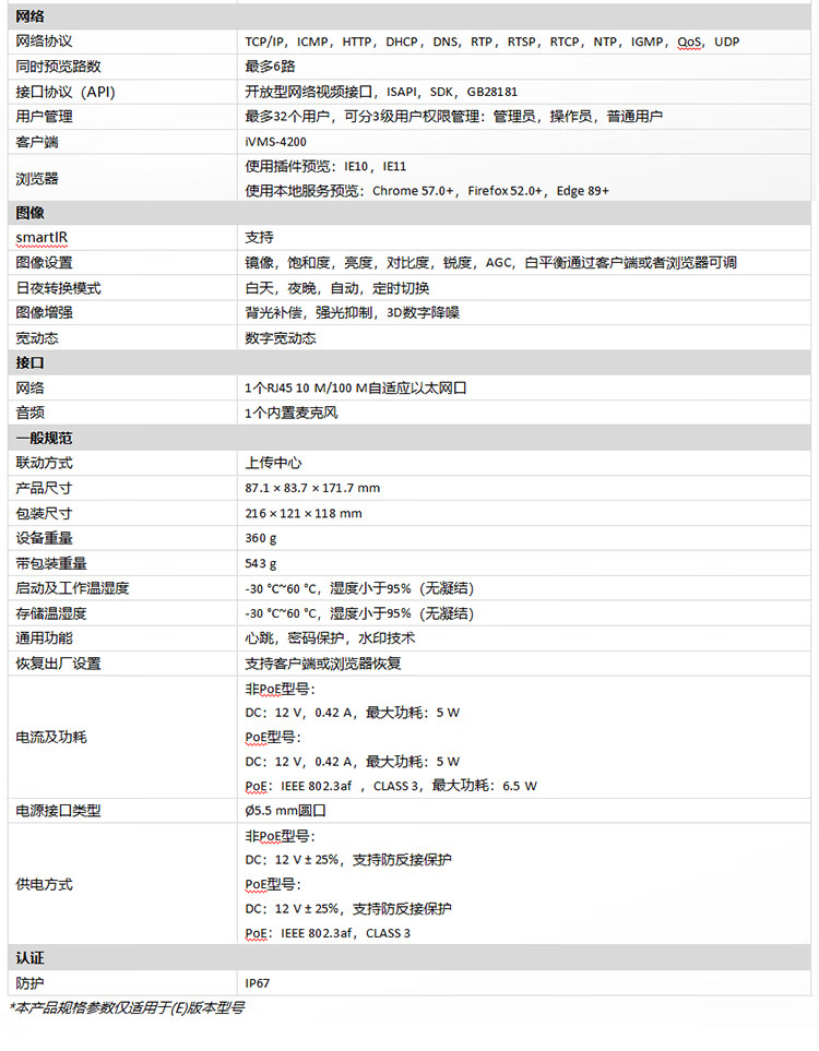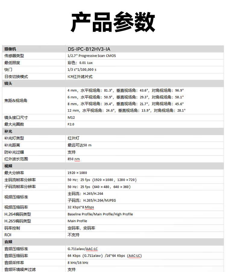 海康威视 监控摄像头 DS-IPC-B12HV3-IA POE 4mm 1个