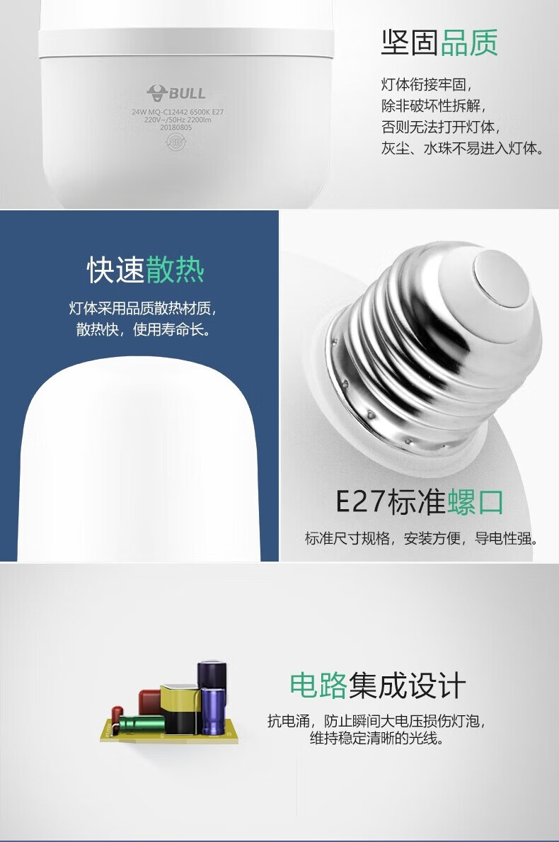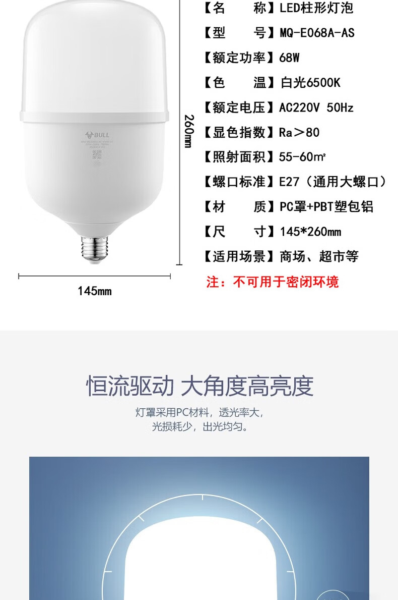 公牛 LED柱形灯泡 MQ-E068A-AS 68W 白光 E27大螺口 1只