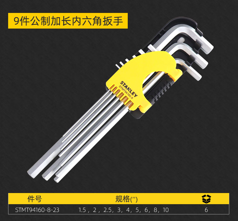 史丹利 公制加长内六角扳手 STMT94160-8-23 1.5-10mm 9件 1套