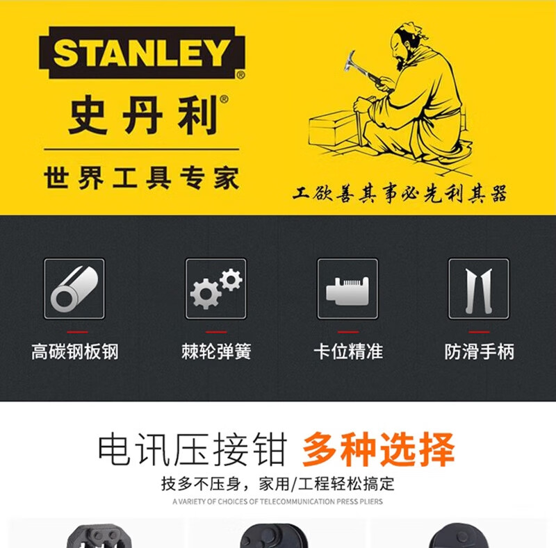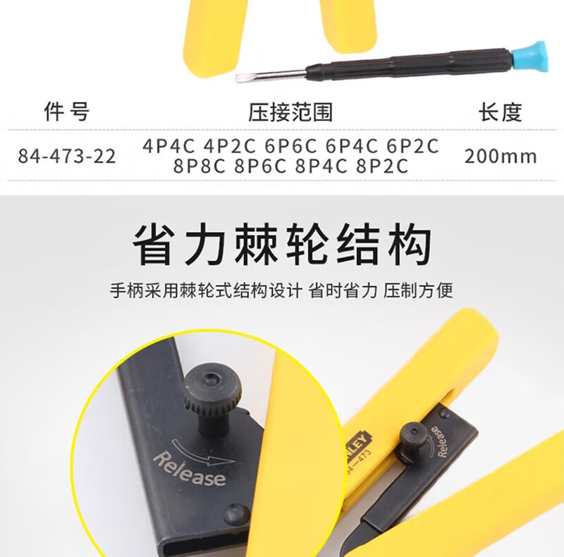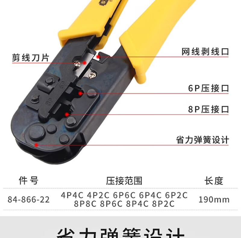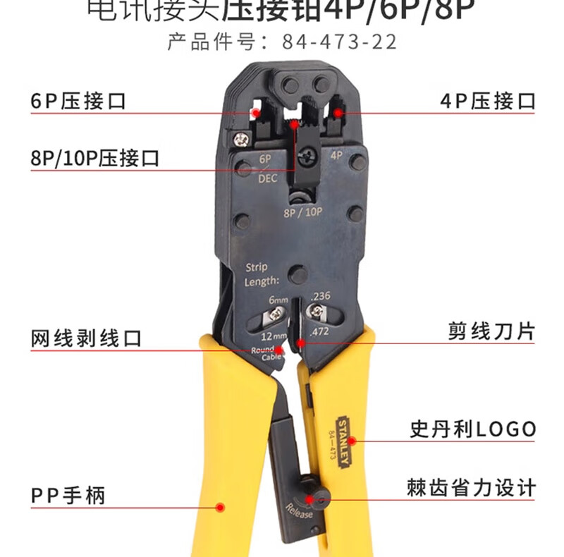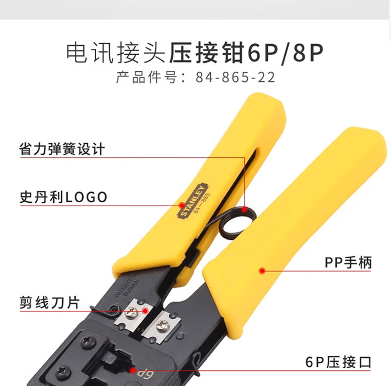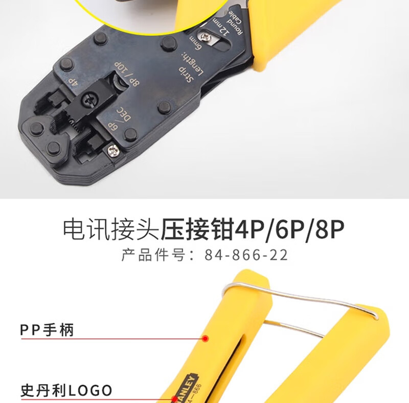 史丹利 电讯接头压接钳 84-866-22 4P/6P/8P 190mm 190mm 1把