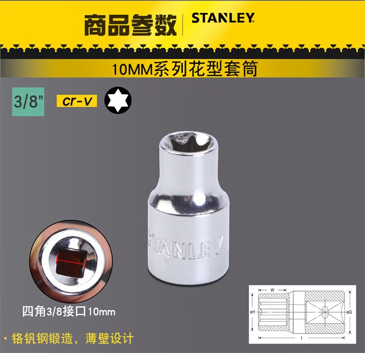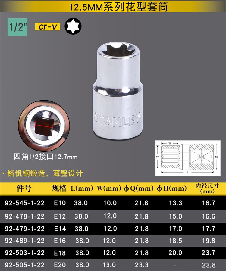 • 商品名称:史丹利 12.5MM系列花形套筒