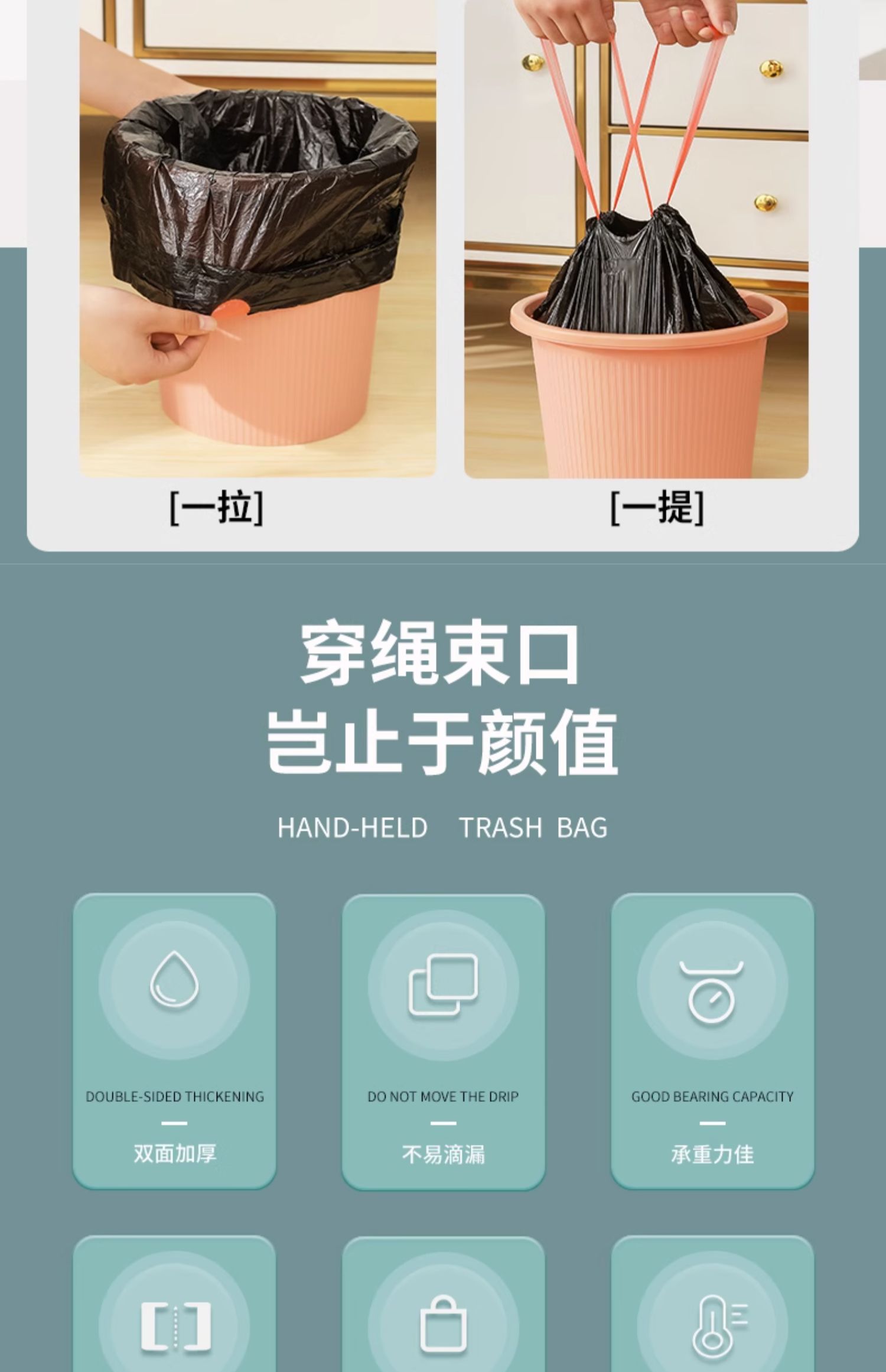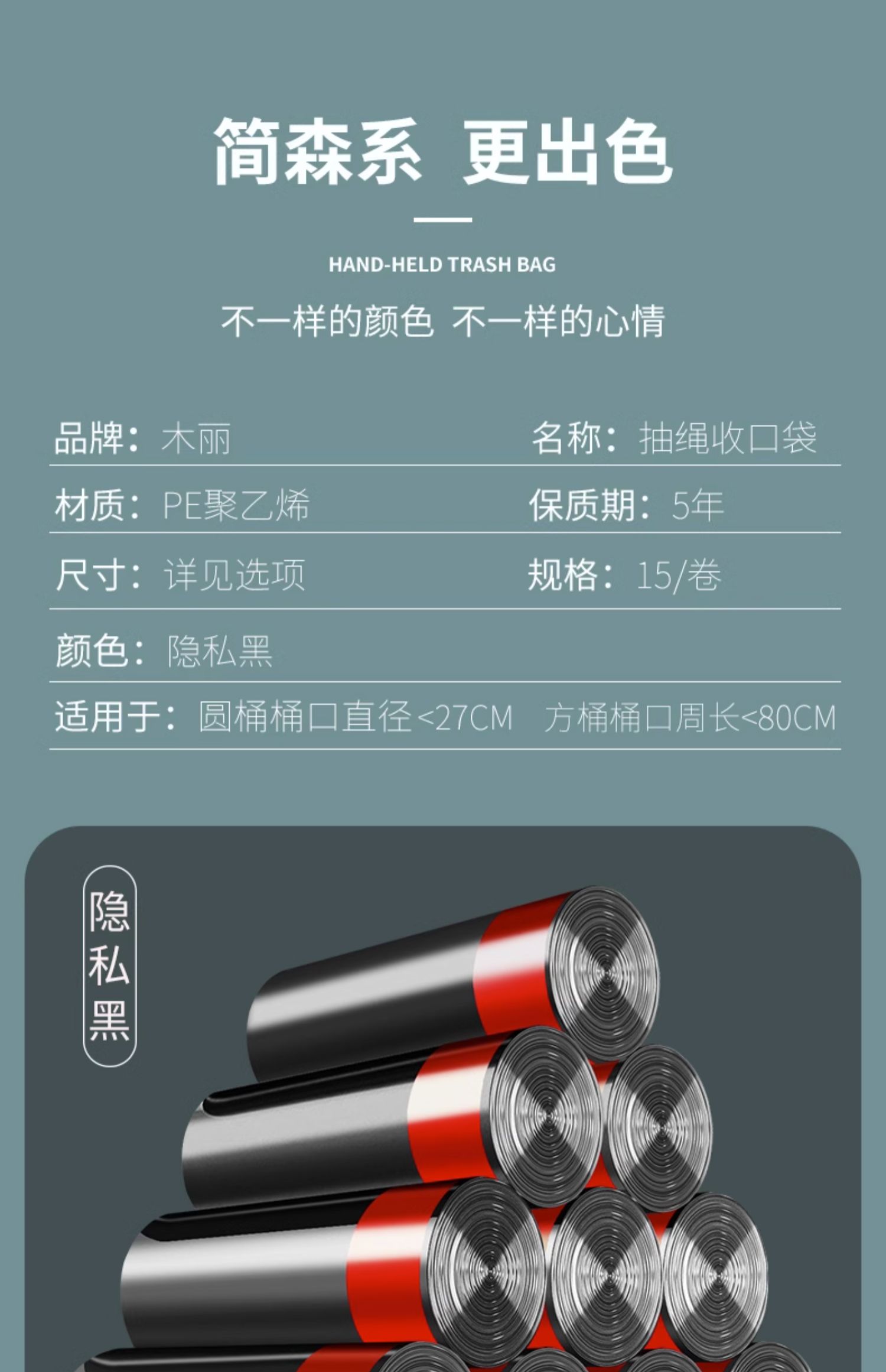 木丽 抽绳式垃圾袋 45*50cm 15只 1卷