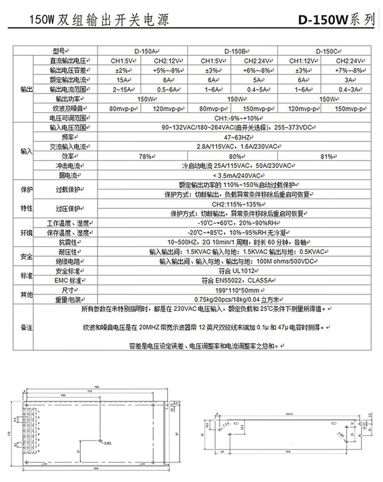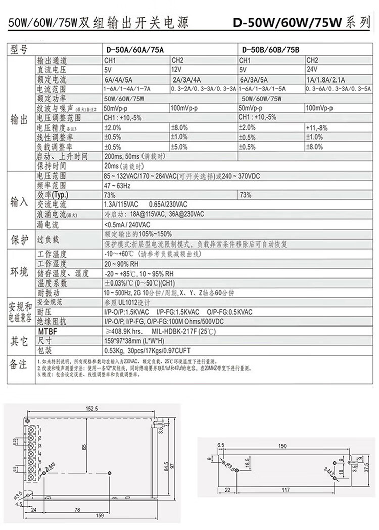 台湾明纬 双输出开关电源 D-50F24V 正负24V1A 1个