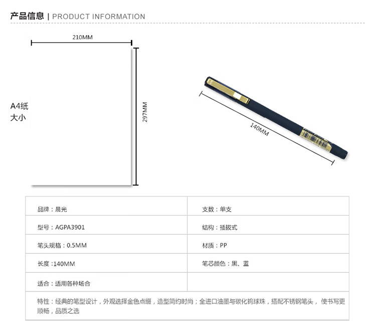 晨光 子弹头中性笔 AGPA4002 黑色 0.5mm 1支