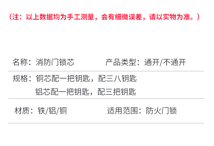 赫思迪格 防火门锁芯 JG-1335 铜芯不通开(3把钥匙) 1个