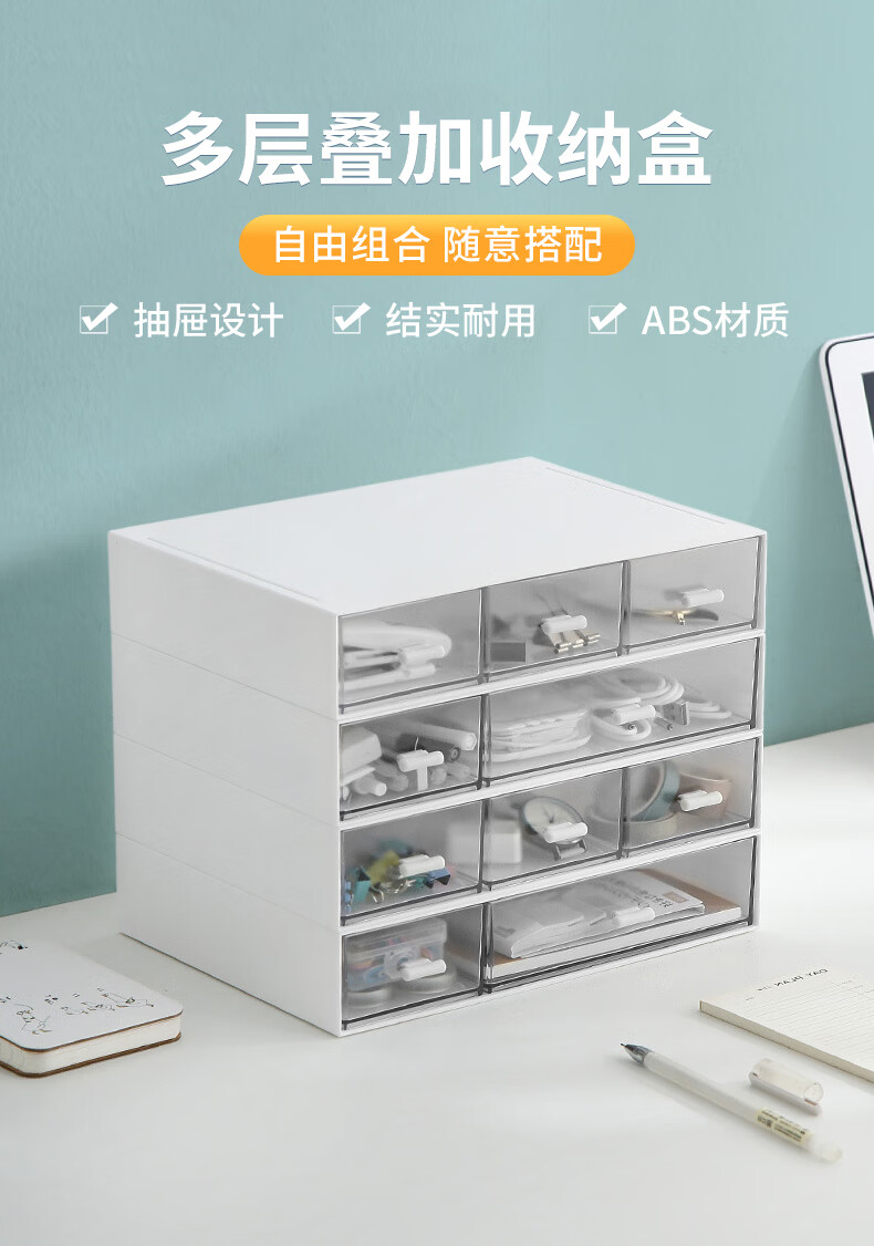 赫思迪格 分格抽屉式收纳盒 HGJ-664 ABS+PS 3抽蓝色 1个