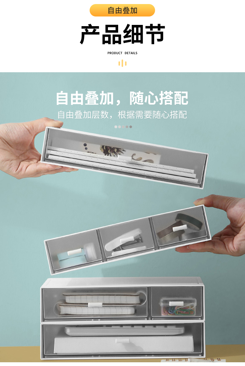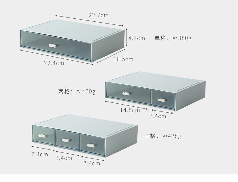 赫思迪格 分格抽屉式收纳盒 HGJ-664 ABS+PS 1抽蓝色 1个