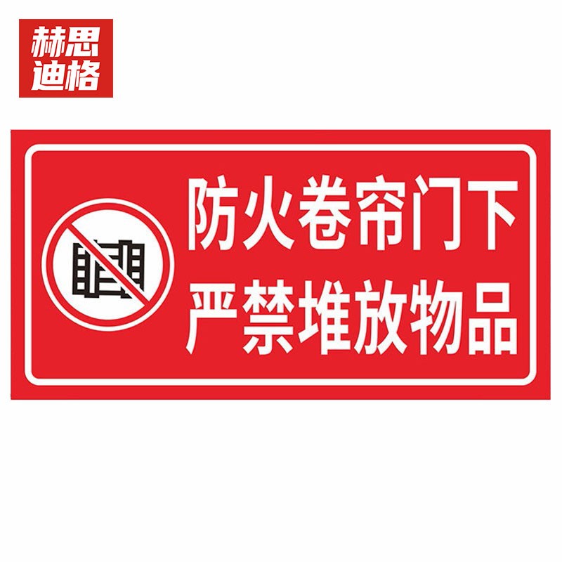 赫思迪格 消防安全标识牌 JG-1535 不干胶贴纸 防火卷帘门下严禁堆放物品 15*30cm 1张
