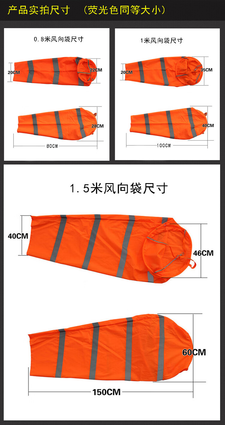 赫思迪格 反光风向袋 HGJ-348 大号1.5m 1个