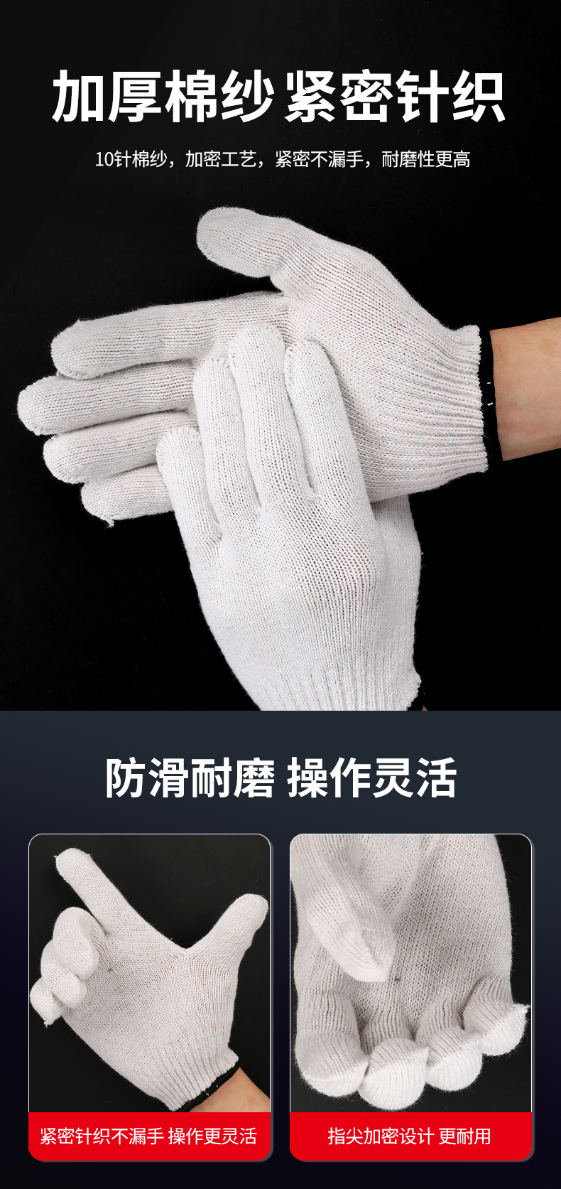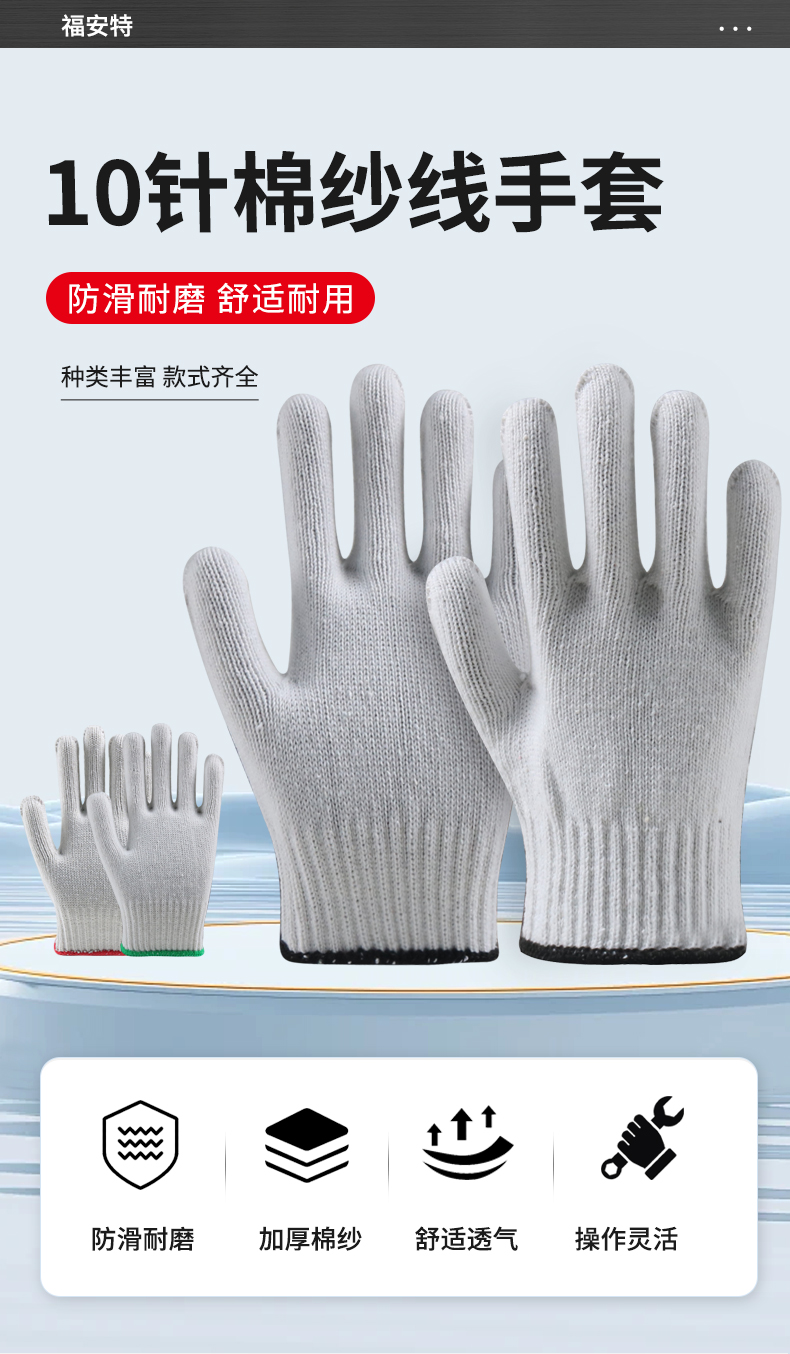 福安特 十线漂白线手套 白色 400克 1双