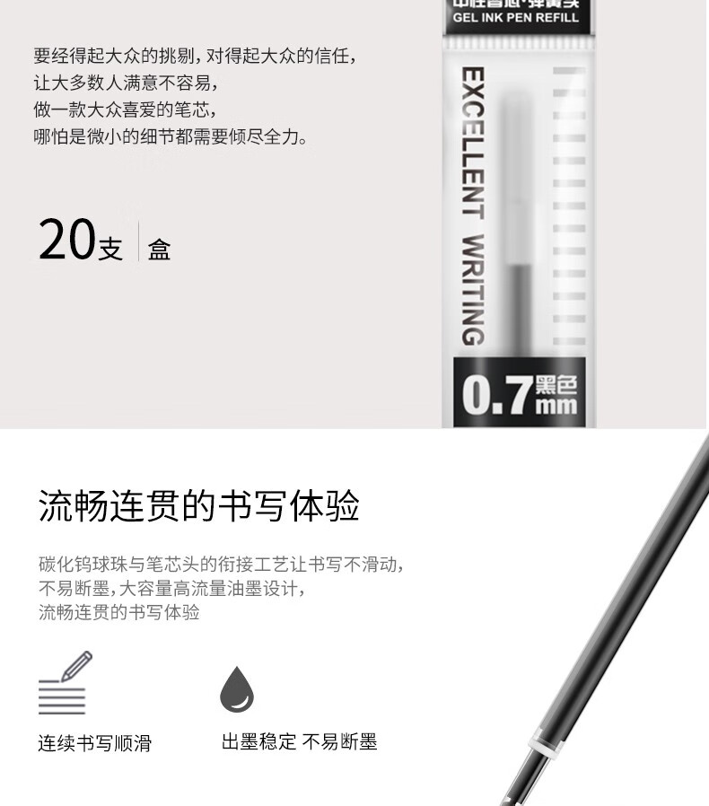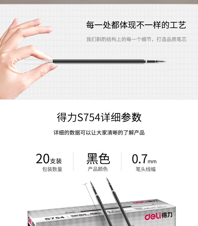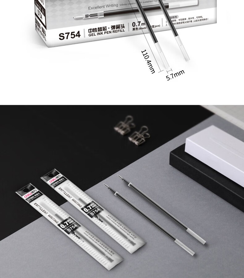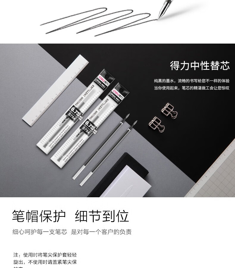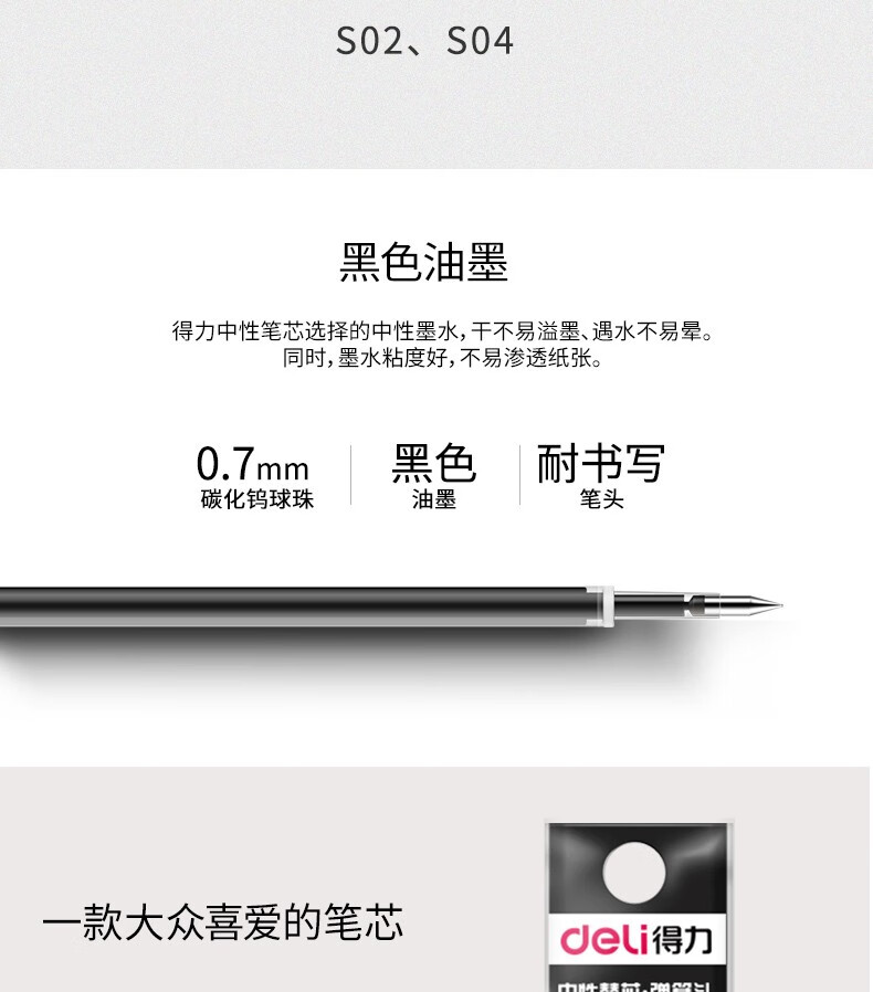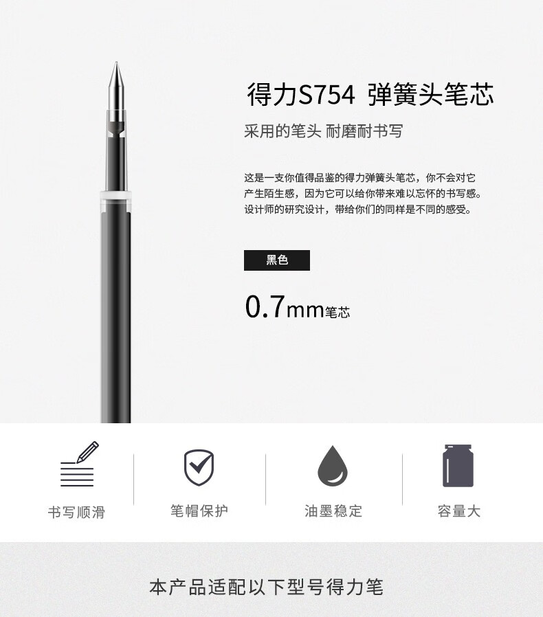 得力 弹簧头中性笔芯 S754 黑色 0.7mm 1支