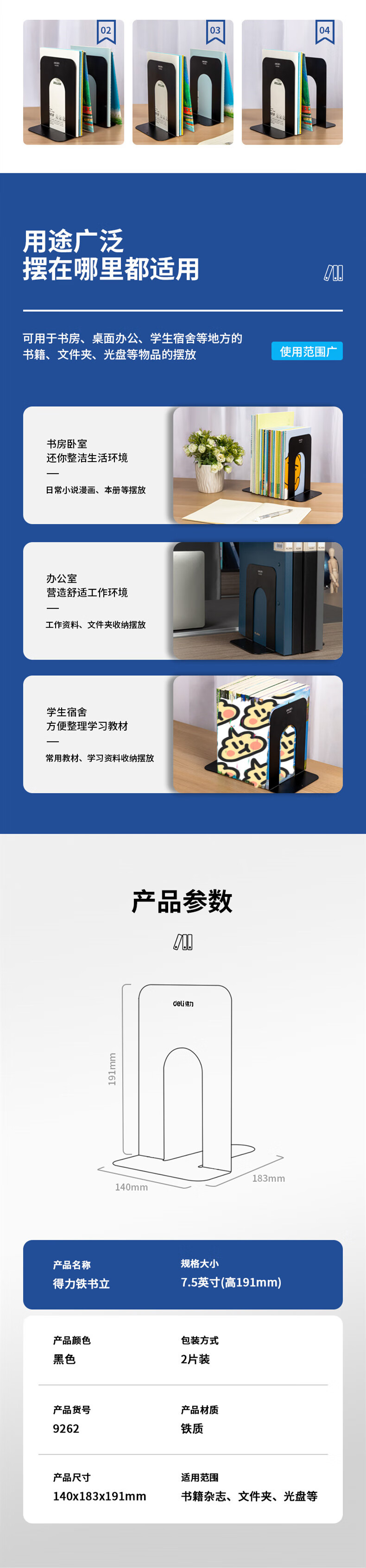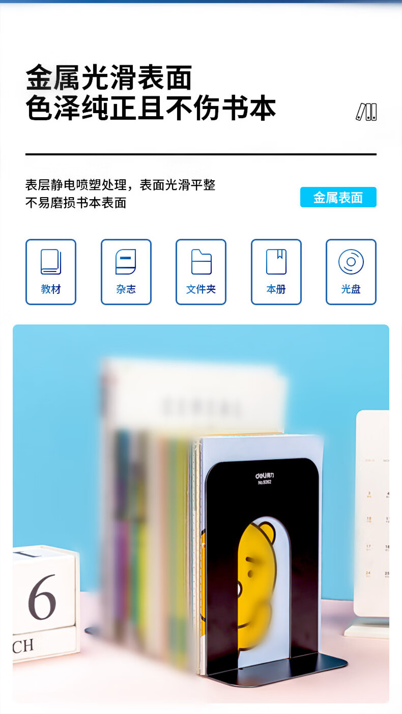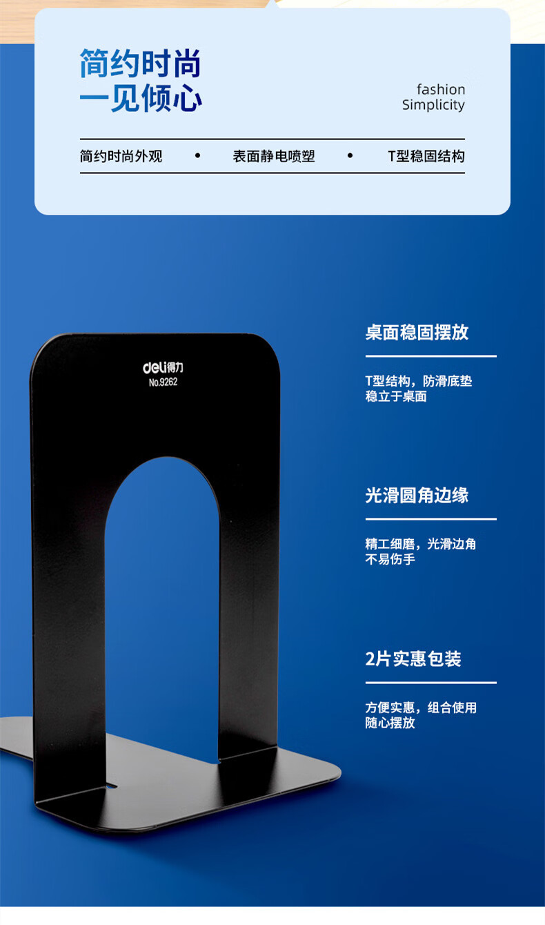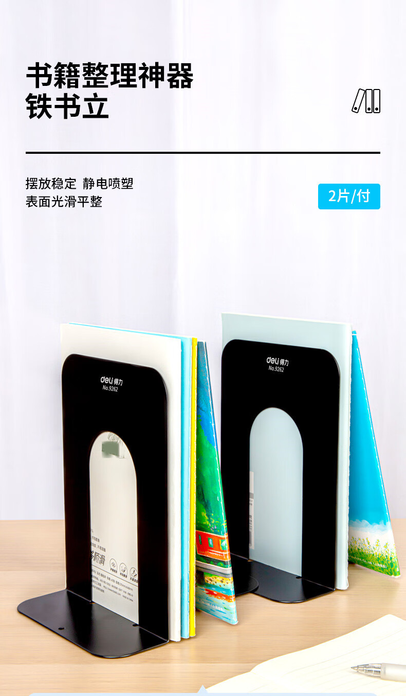 得力 铁书立 9262 黑色 7.5寸 2片 1付