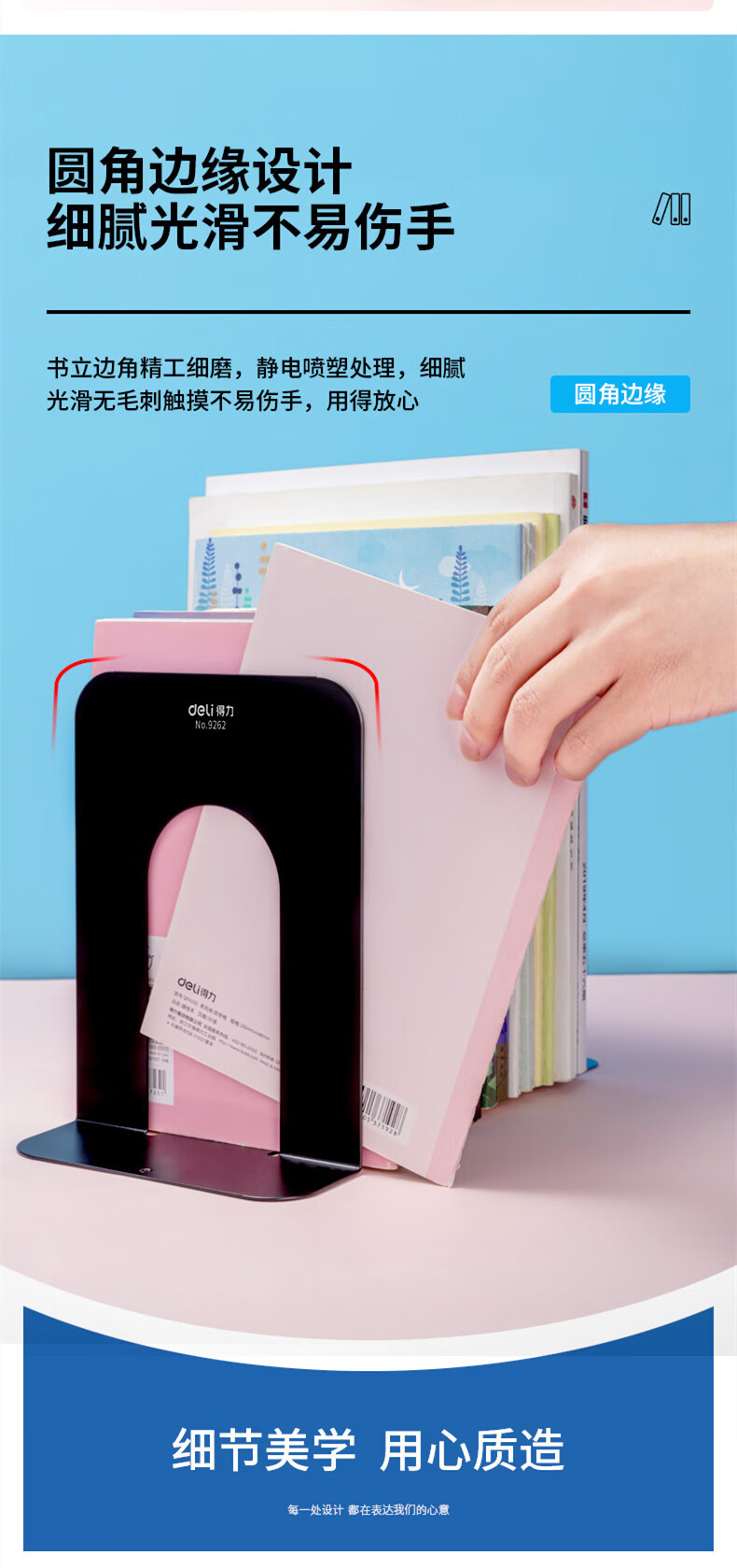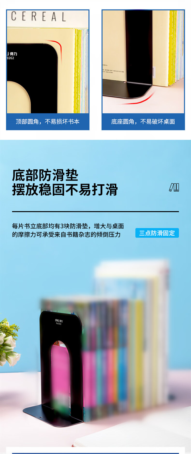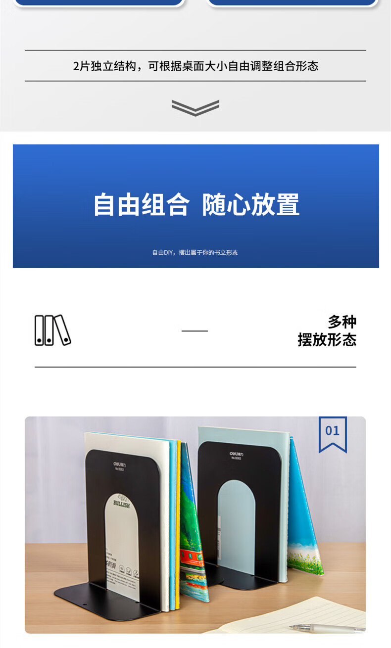 得力 铁书立 9262 黑色 7.5寸 2片 1付