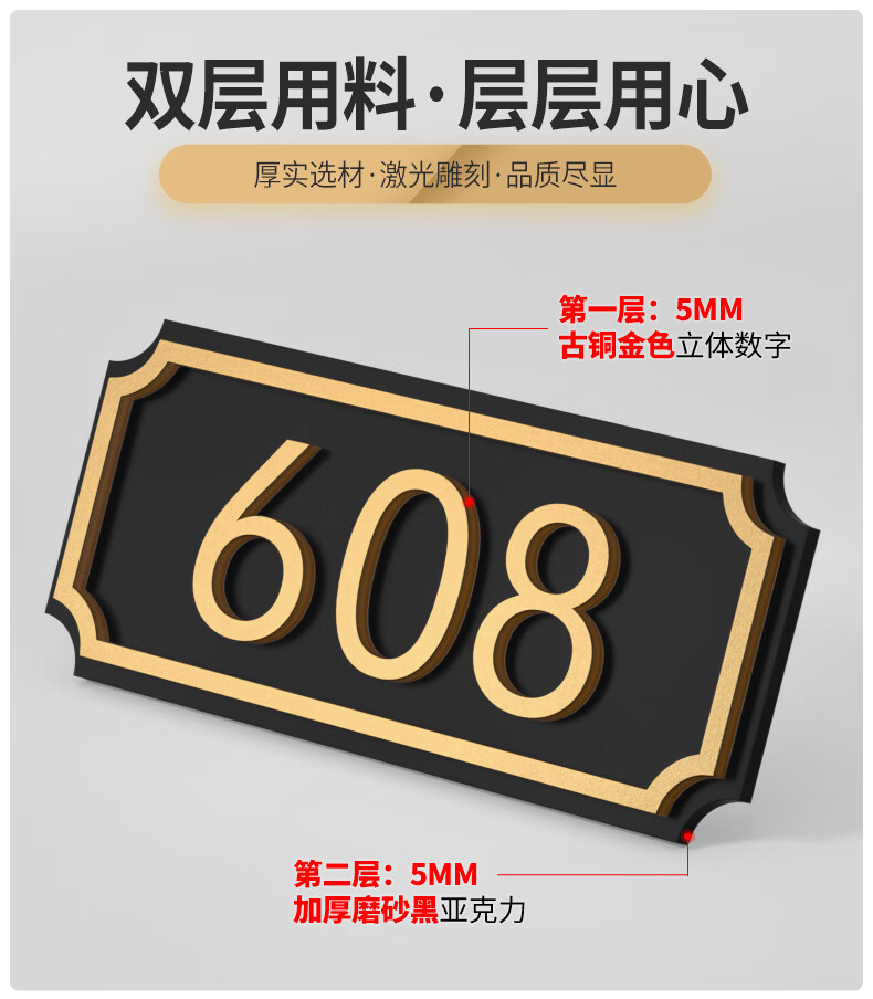 赫思迪格 亚克力号码牌 HGJ-82 17*8cm横款金色边框 1个