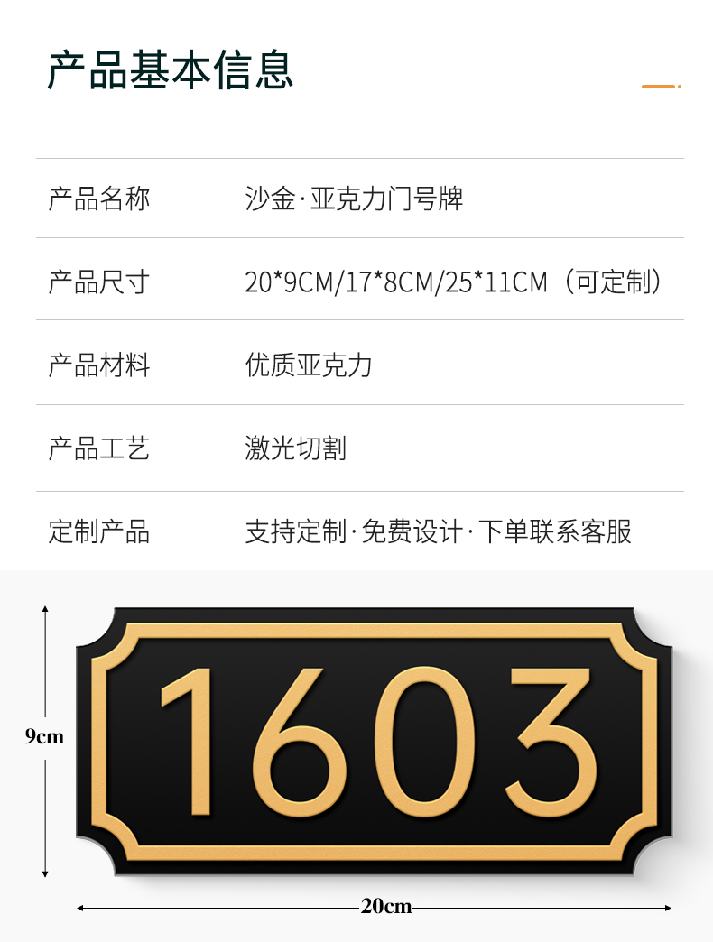 赫思迪格 亚克力号码牌 HGJ-82 20*9cm横款金色 1个