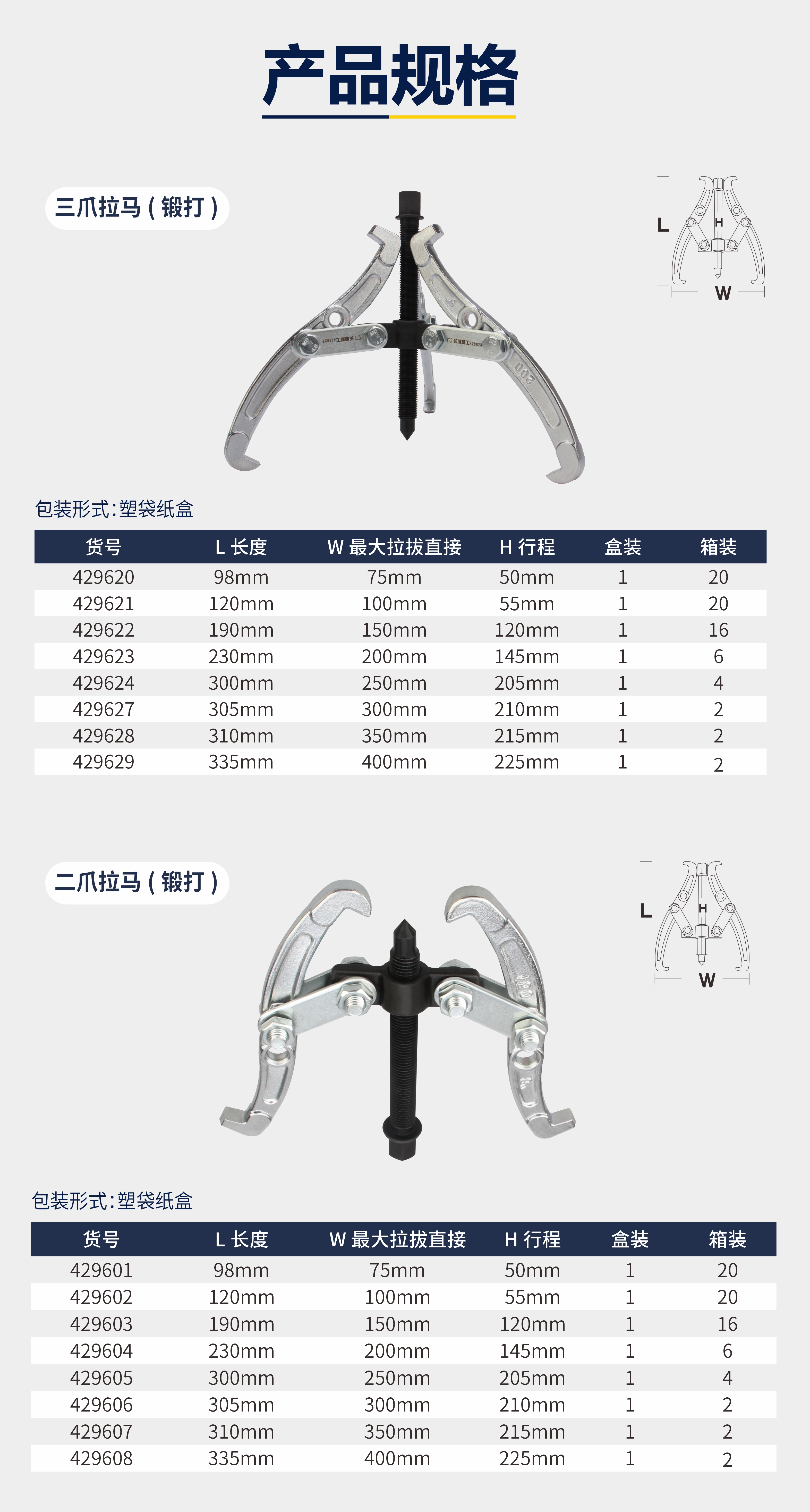 长城精工 二爪拉马 429606 铬钒钢 300mm 1只