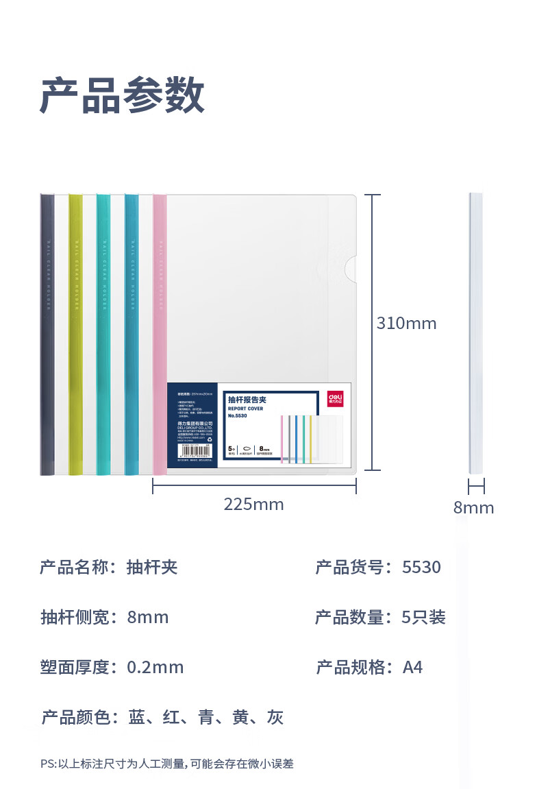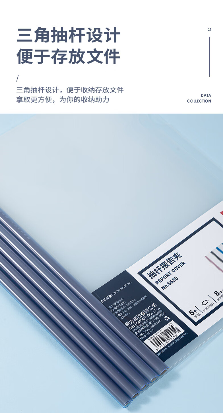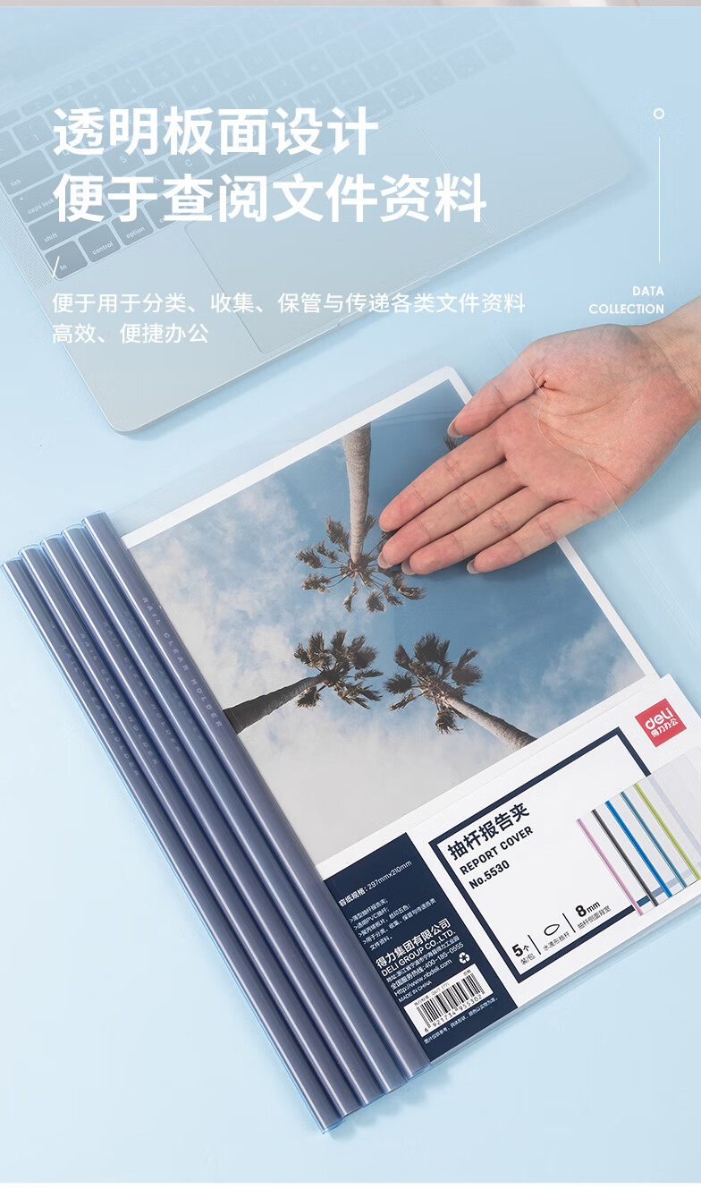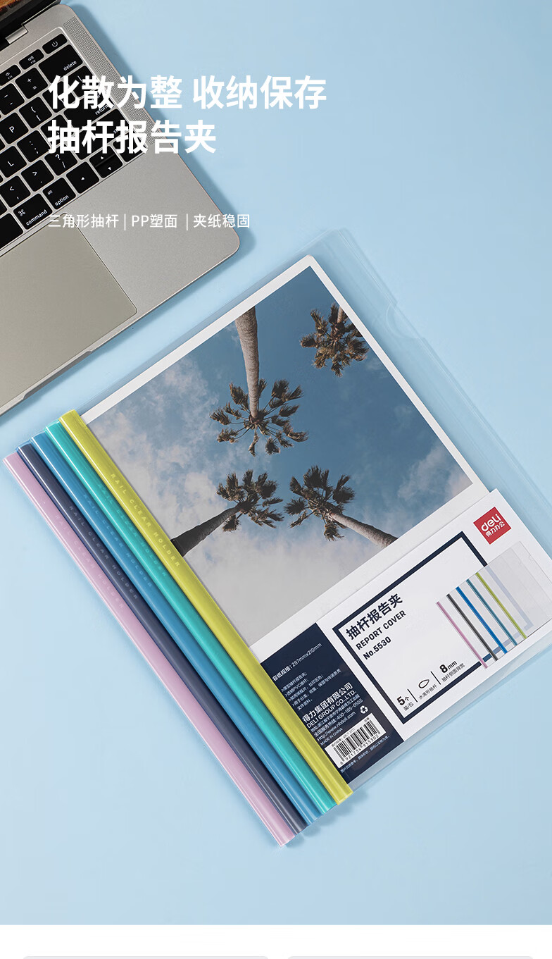 得力 抽杆文件夹 5530 混色 侧宽8mm 5个 1包