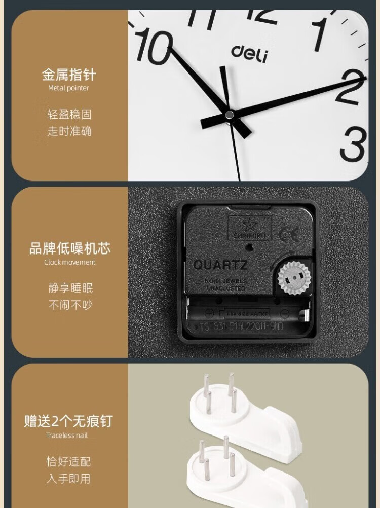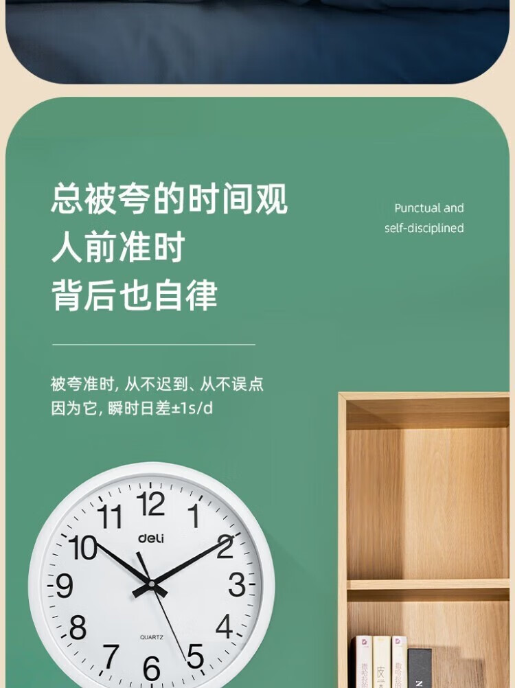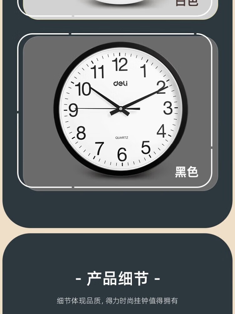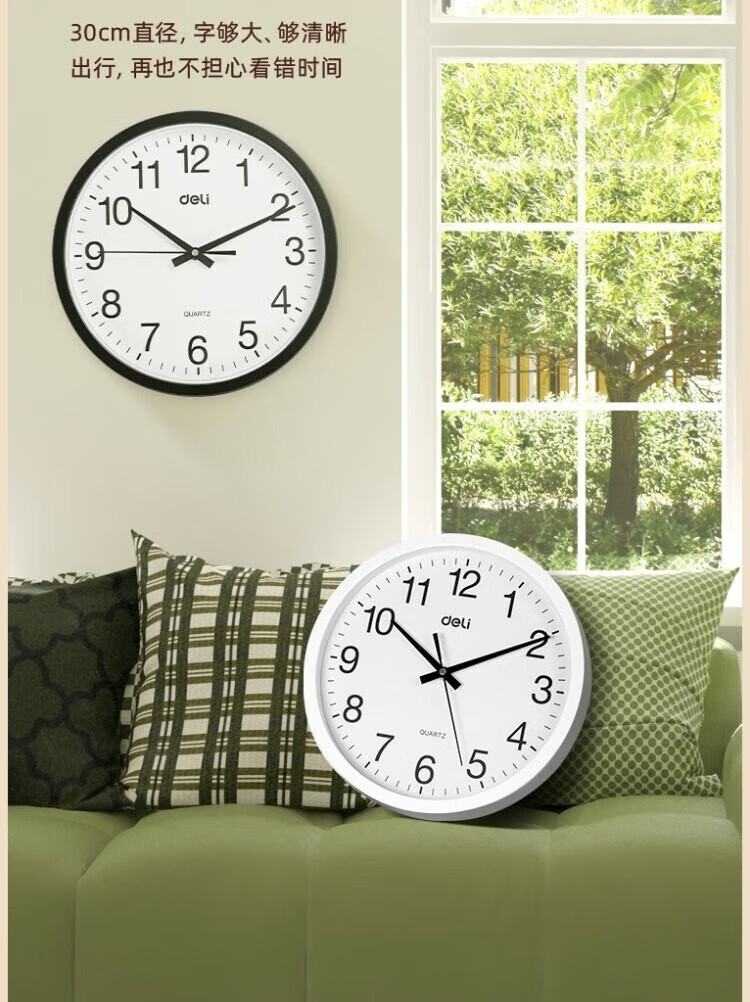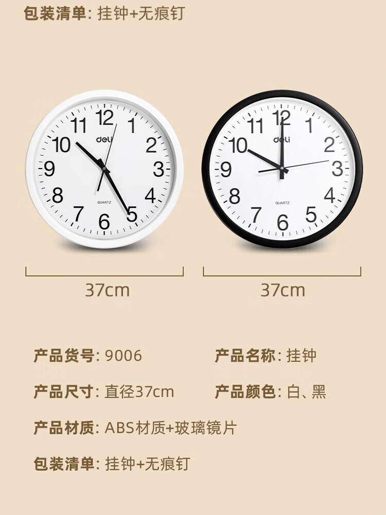 得力 挂钟 9006 直径37cm 颜色随机 1只