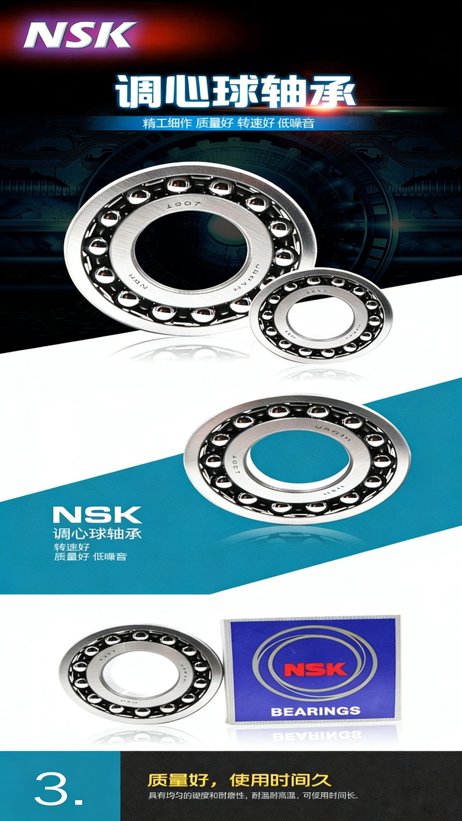 NSK 圆柱孔调心球轴承 2211 双列 开放型 1套