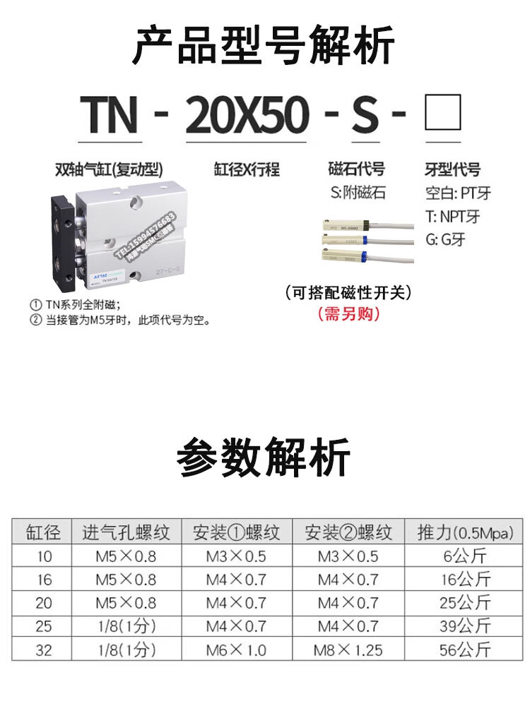 亚德客 TN系列双轴气缸(企标) TN25X60-S 1个