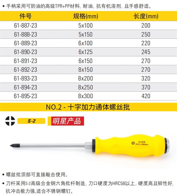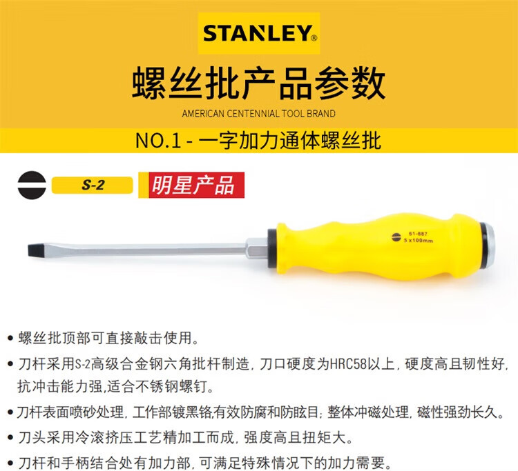 史丹利 一字加力通体螺丝批 61-895-23 合金钢材质 8mmx300mm 1把