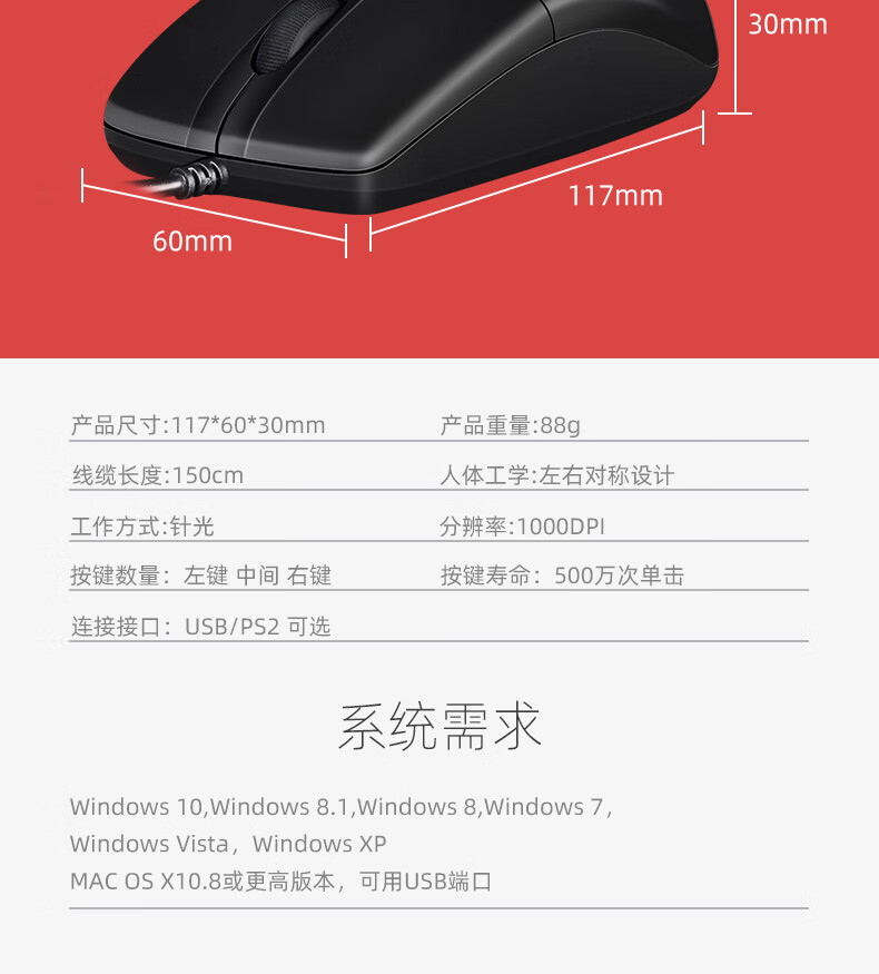 双飞燕 办公有线鼠标 OP-520NP 圆孔接口 1个