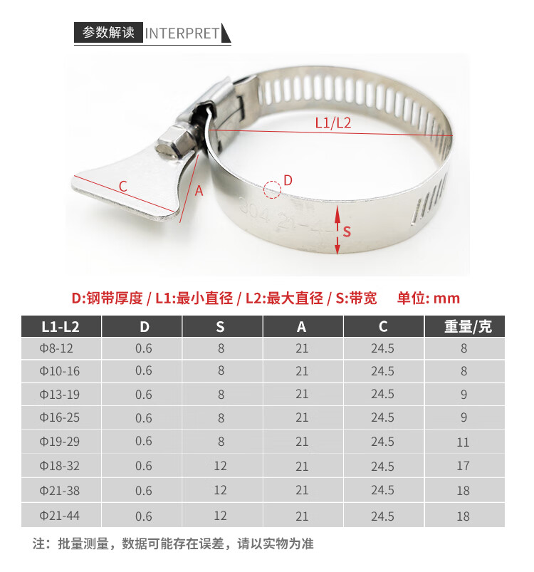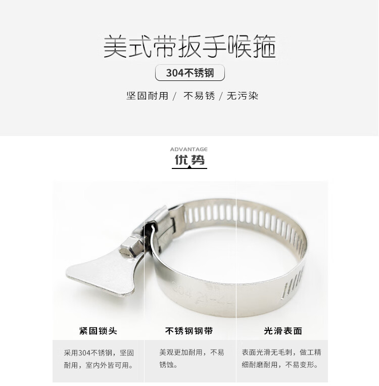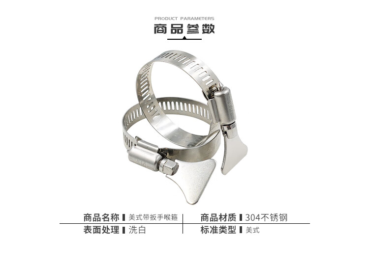 海斯迪克 带手柄卡箍 gnjz-194 304不锈钢 33-57mm 10个 1件