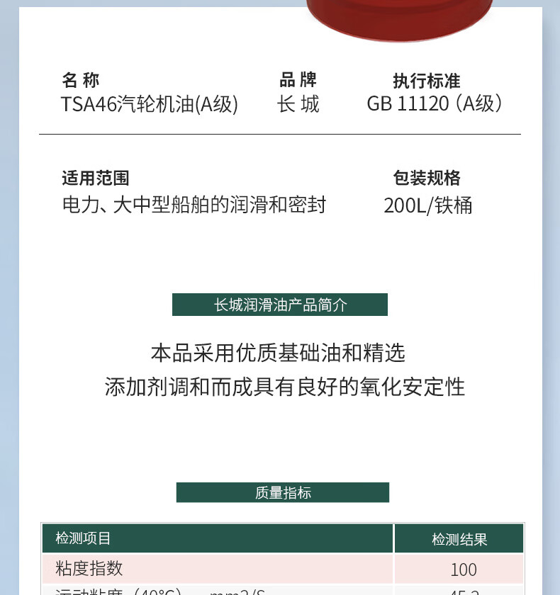 长城 汽轮机油 L-TSA46 170KG/200L 1桶