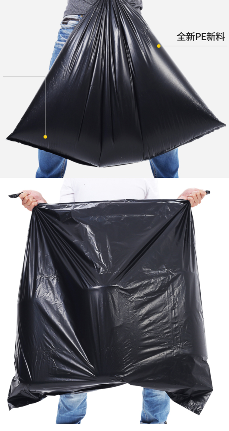 海斯迪克 加厚黑色平口垃圾袋 HKLY-139 90*110cm 4丝 50只 1件