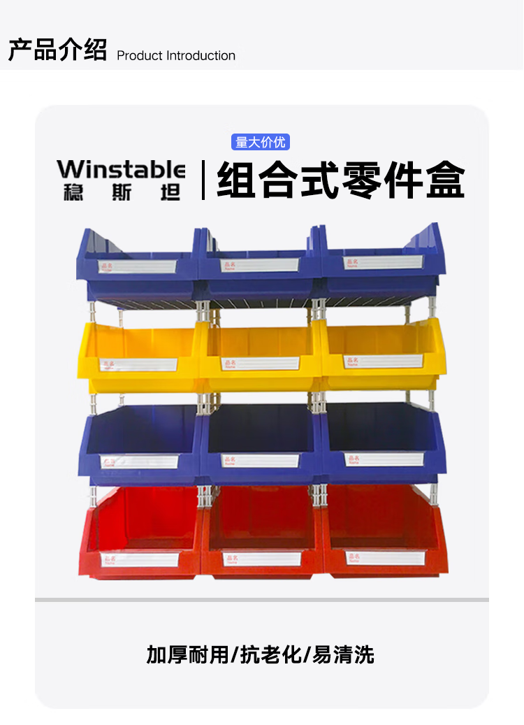 稳斯坦 组合式塑料零件盒 WST014 黄250*155*110mm 1个
