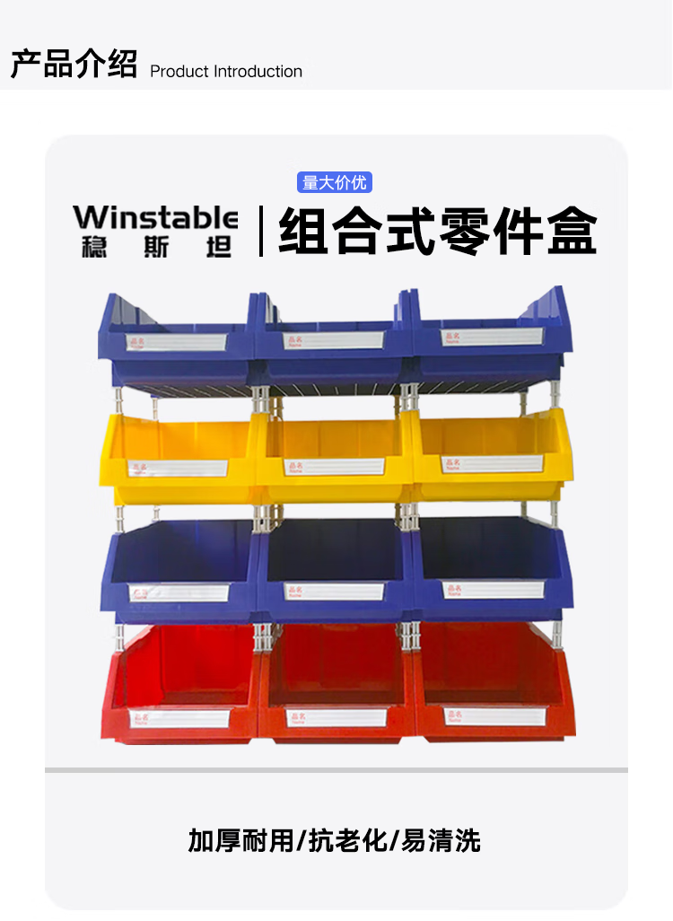 稳斯坦 组合式塑料零件盒 WST014 蓝180*120*80mm 1个