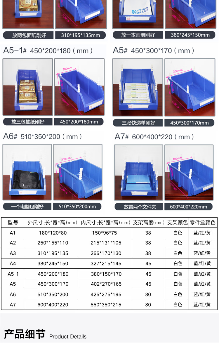 稳斯坦 组合式塑料零件盒 WST014 红450*300*170mm 1个